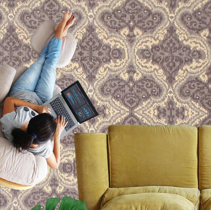 6' x 9' Hand Knotted IKAT Design 100% Wool Area rug Gray