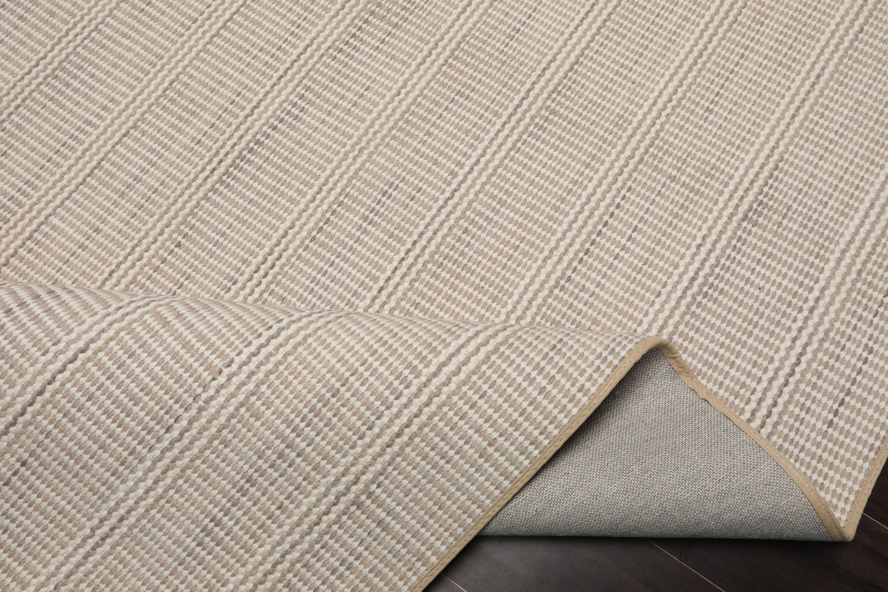 Bring understated sophistication to your space with this beige taupe handloom broadloom rug. Expertly woven its intricate checkered texture and subtle tonal variation create a rich dimensional look. The soft blend of beige and taupe hues offers a calm neutral palette that complements a wide range of interiors. Its tightly woven structure ensures longevity and minimal shedding making it ideal for high-traffic areas. The crisp edges and clean lines enhance its tailored appeal—perfect for modern transitional or classic settings.