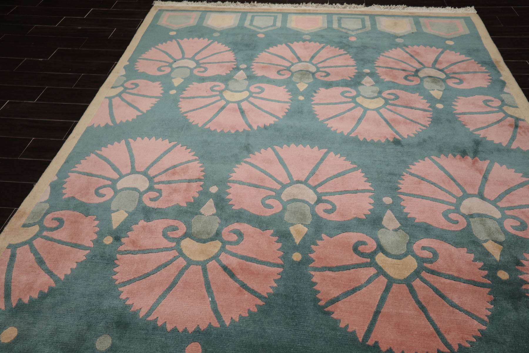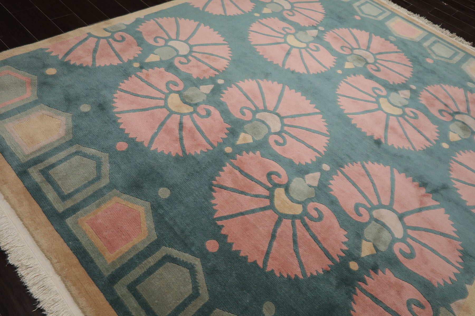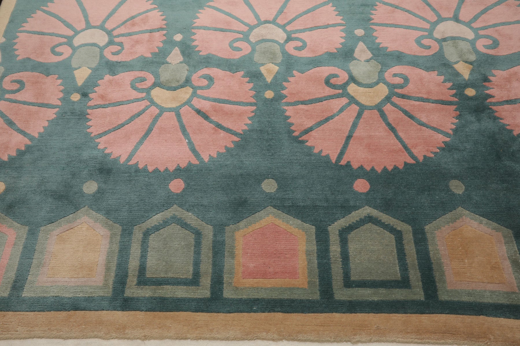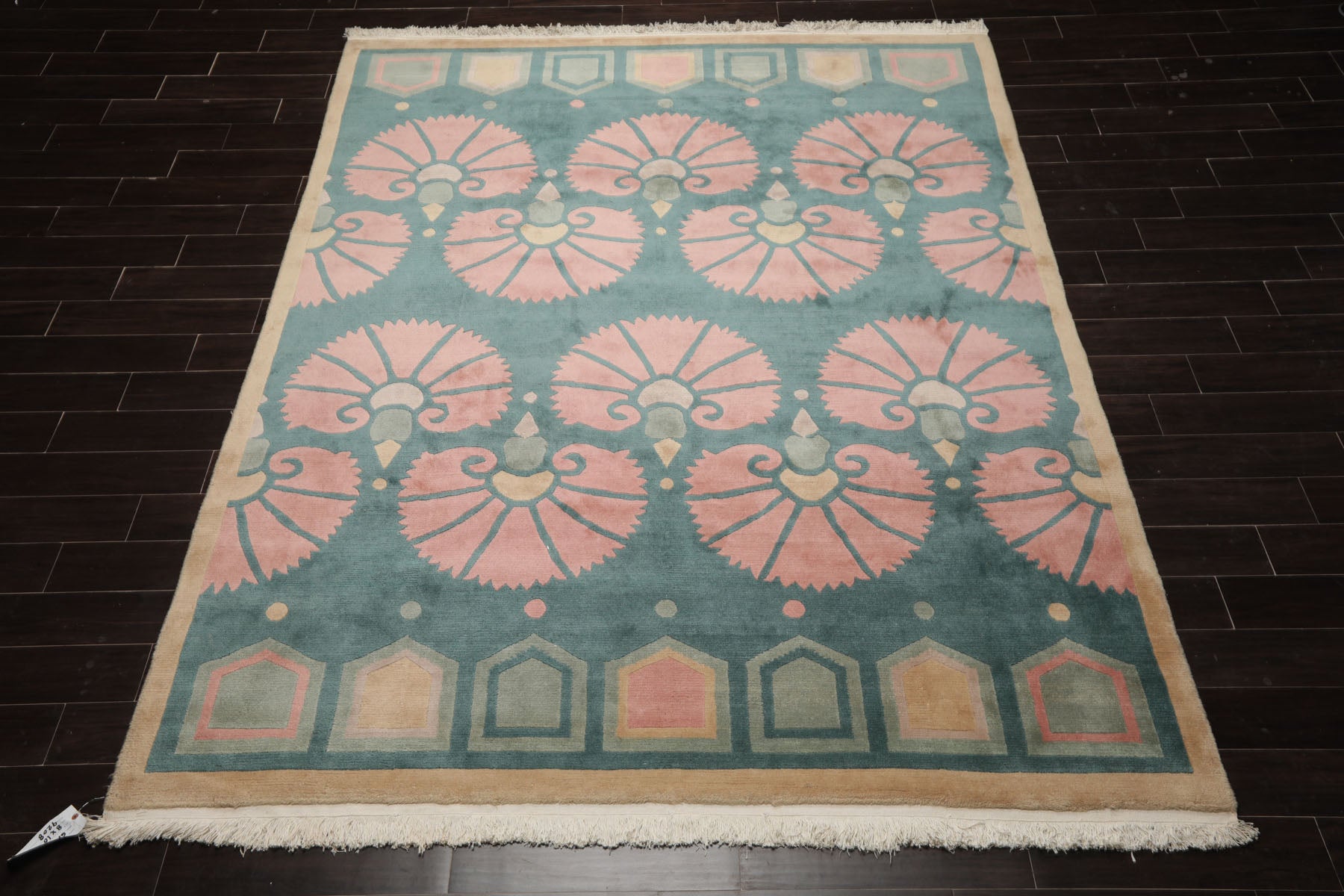 Crafted from premium wool and woven with a .6" pile height, the Tibetan rug by Michaelian & Kohlberg exemplifies durability paired with sophistication. Its floral patterns in turquoise, rose, and beige are accentuated through the Swiss Wash process, a technique that carefully cleanses the fibers and leaves a smooth, luxurious finish. Ideal for transitional interiors, the piece brings both visual artistry and lasting quality.