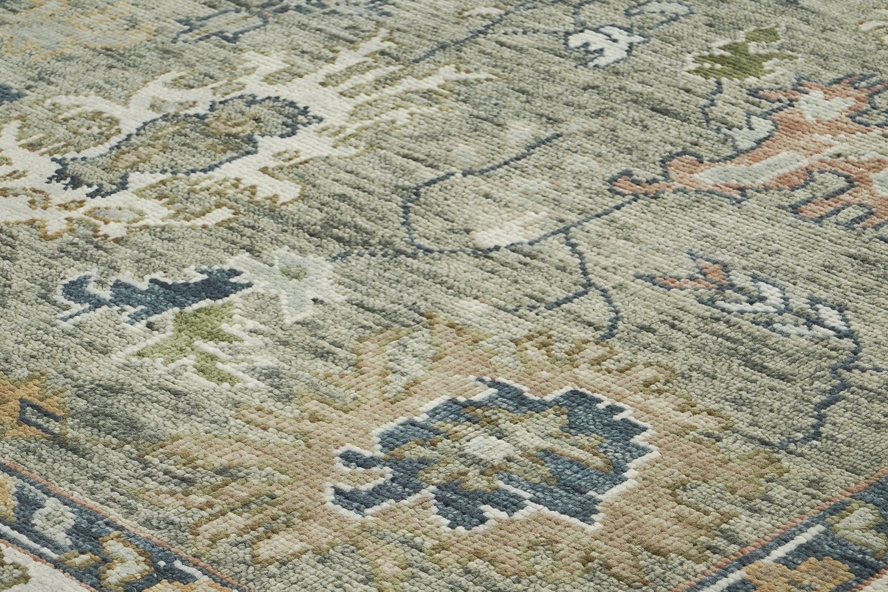 Embodying the serene sophistication of Arts and Crafts design, this hand-knotted Oushak rug captivates with its ethereal mint green field that serves as a tranquil canvas for an array of organic botanical motifs and abstract floral forms. The softly weathered aesthetic features scattered medallions and stylized flora in beige, gold, brown, and deeper green tones, creating a composition that feels both spontaneous and thoughtfully arranged, as if capturing a moment from a natural landscape. Framed by a generous ivory border adorned with traditional Oushak motifs, the rectangular design achieves perfect equilibrium between visual interest and restful simplicity, never overwhelming but always engaging the eye with subtle detail. Master artisans have invested extraordinary care in hand-knotting premium wool onto a cotton foundation, creating variations in texture and tone that give this piece authentic character and depth impossible to replicate through machine production. The muted, nature-inspired palette exudes calming elegance that adapts beautifully to diverse interior styles, from modern farmhouse and coastal casual to refined transitional and contemporary spaces seeking a soft, grounded anchor. Its luxurious wool pile promises lasting comfort and resilience, designed to develop an increasingly distinguished patina that enhances rather than diminishes its beauty over years of cherished use.