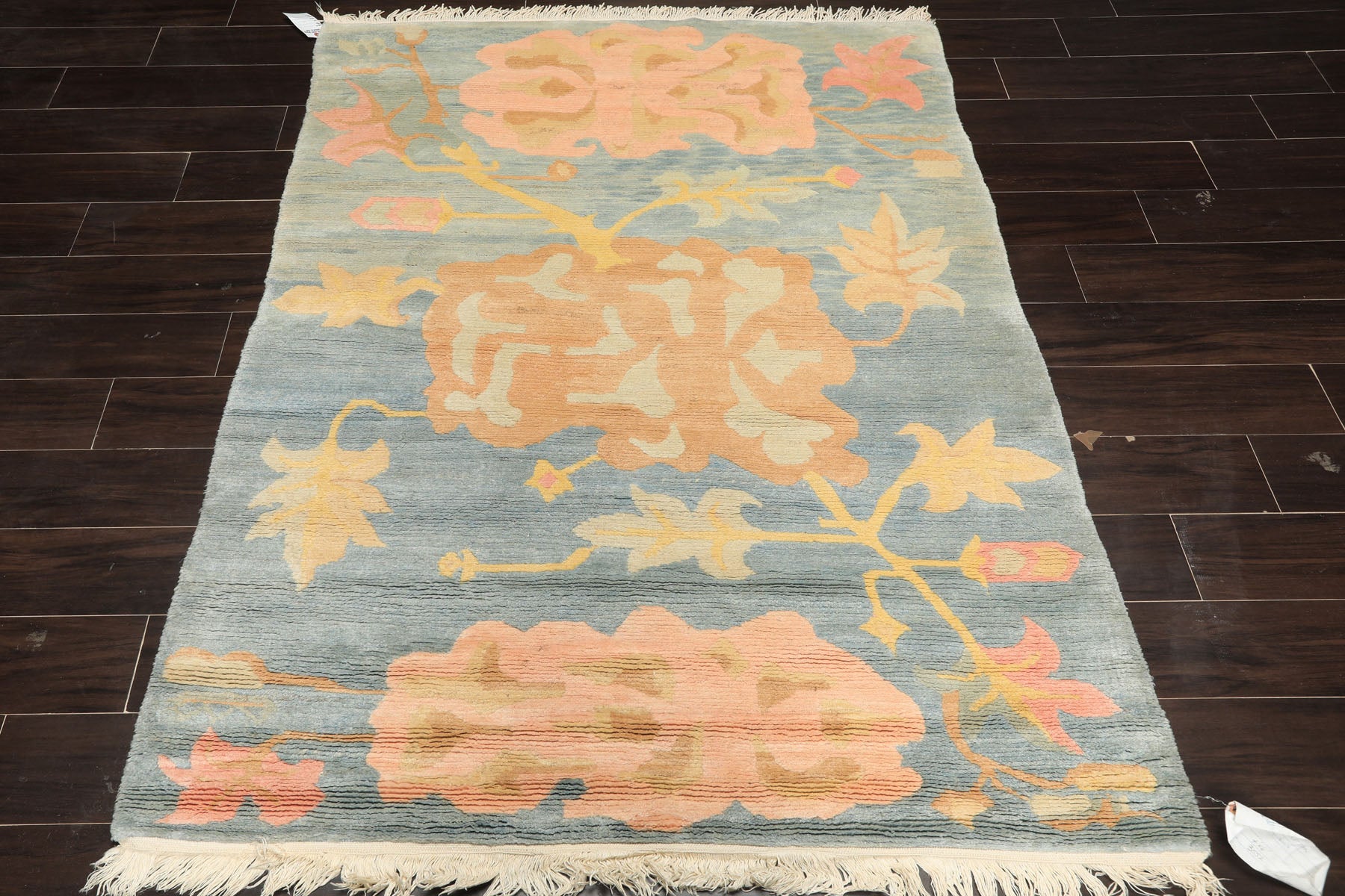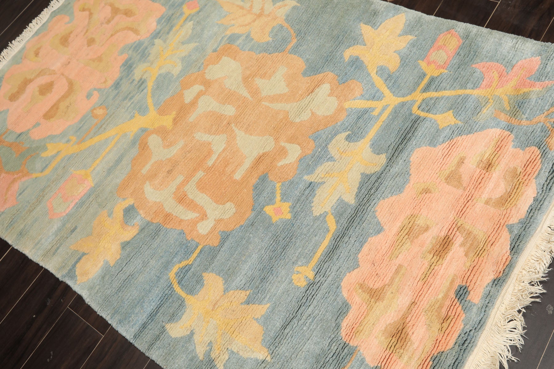 4x6 Hand Knotted Wool Blue, Blush Tibetan Transitional Vintage Tufenkian Rug