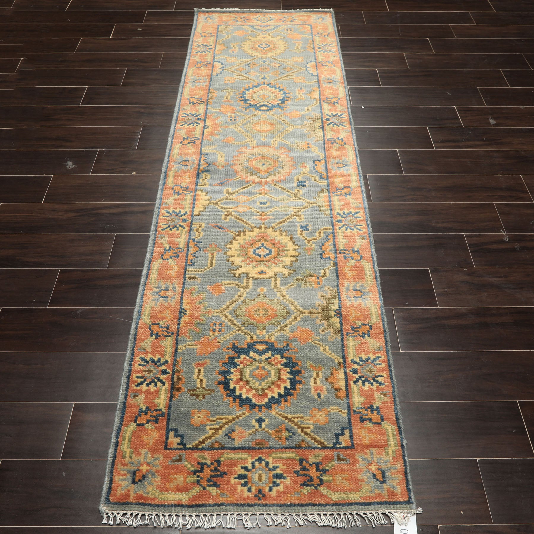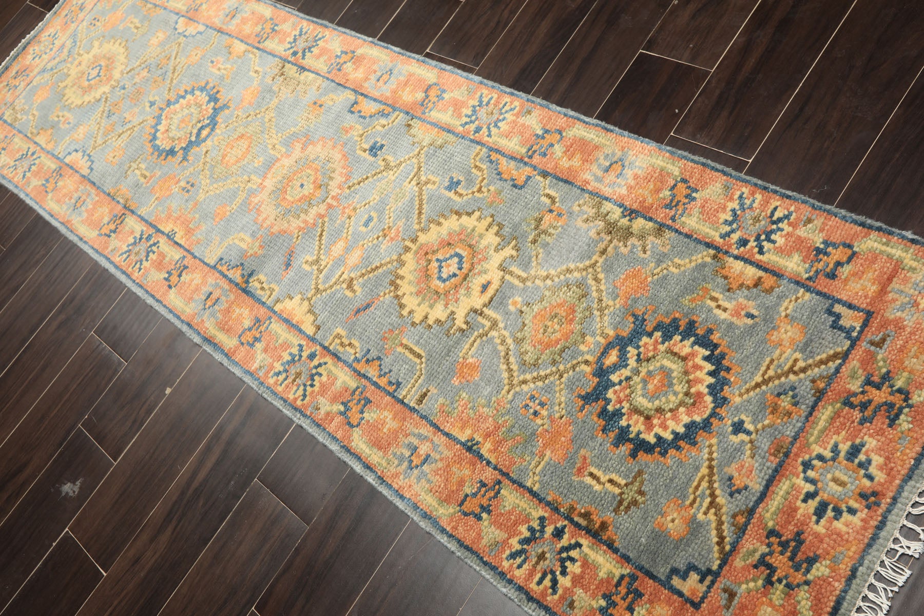 Celebrated for their sophisticated palette and refined aesthetic, traditional Oushak rugs have long been treasured by discerning collectors who recognize the artistry inherent in authentic hand-knotted craftsmanship. This wool runner showcases the signature design elements that made Oushak weaving renowned across continents, geometric medallions float gracefully along a slate blue field, accented by peach, orange, gold, and green tones that create dimensional warmth and visual intrigue. Skilled artisans hand-knotted each knot on a durable cotton foundation using time-honored techniques, ensuring the structural integrity and longevity that distinguish heirloom-quality pieces from mass-produced alternatives. The harmonious multi-toned color story adapts effortlessly to evolving design preferences while maintaining its timeless appeal, and the natural wool fibers develop a beautiful patina over years of use that enhances rather than diminishes the rug's character. Subtle variations in color and texture reflect the human touch behind every knot, transforming this traditional runner into a functional work of art that brings depth, authenticity, and curated style to your home. Discover how this exceptional piece can anchor your space with enduring beauty.