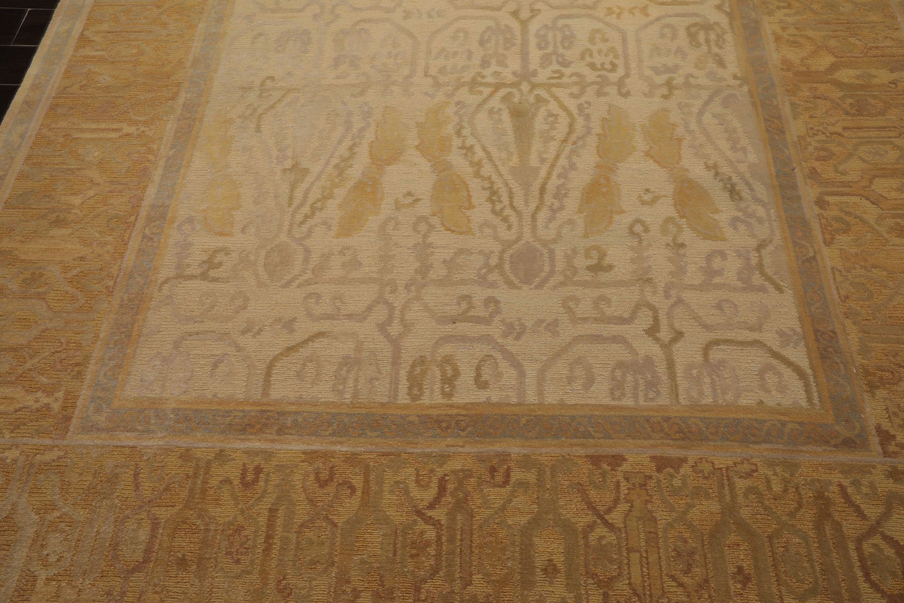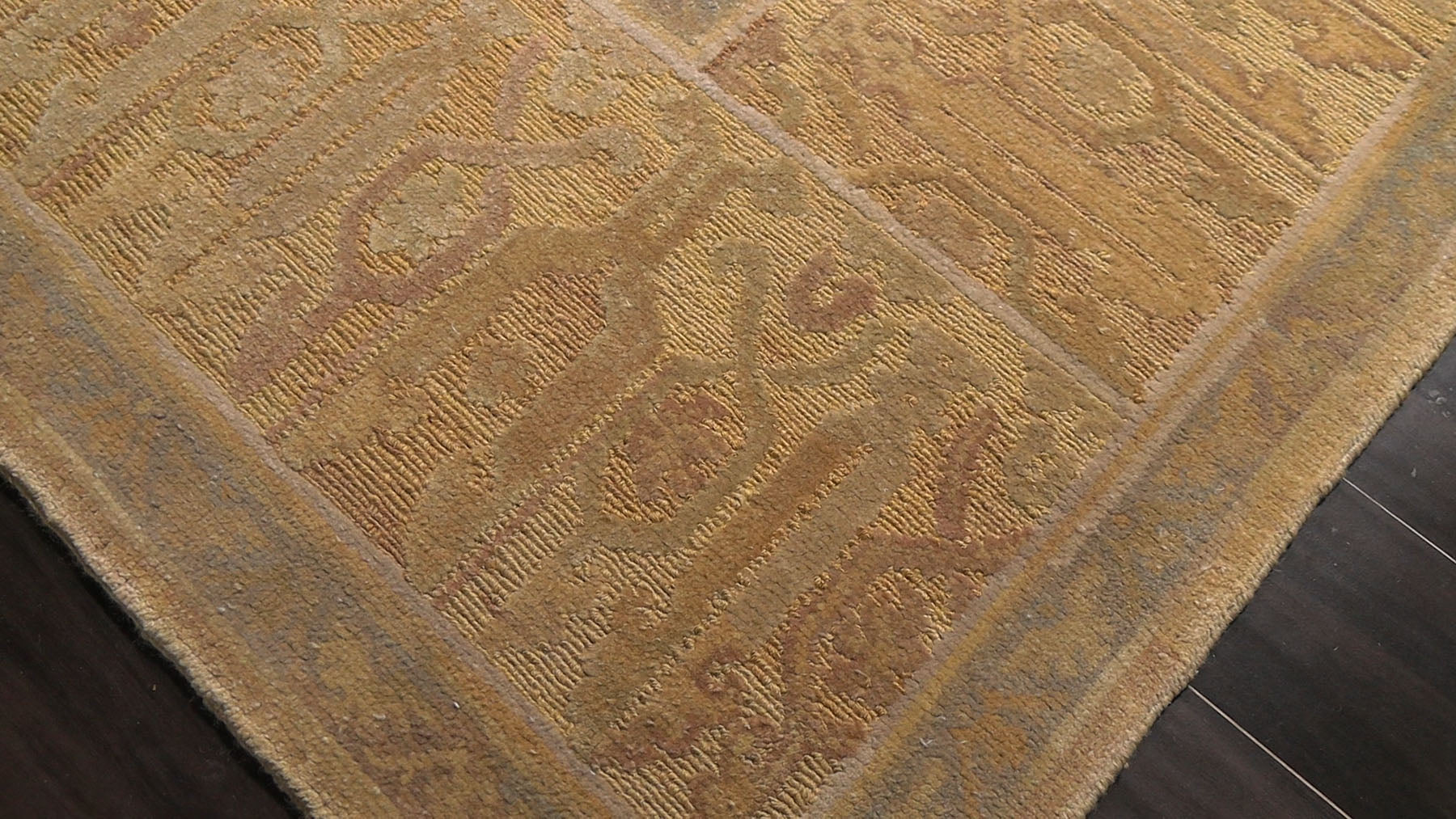 A refined expression of European-inspired elegance, this Chinese Aubusson Savonnerie rug radiates warmth through its harmonious blend of beige, gold, taupe, and gray tones. Hand woven in wool with a luxurious loop-and-cut pile, the rug balances softness with texture, creating subtle dimension that enhances its classic design. The graceful motifs and muted palette evoke timeless sophistication, making it a versatile piece for both formal and transitional interiors.