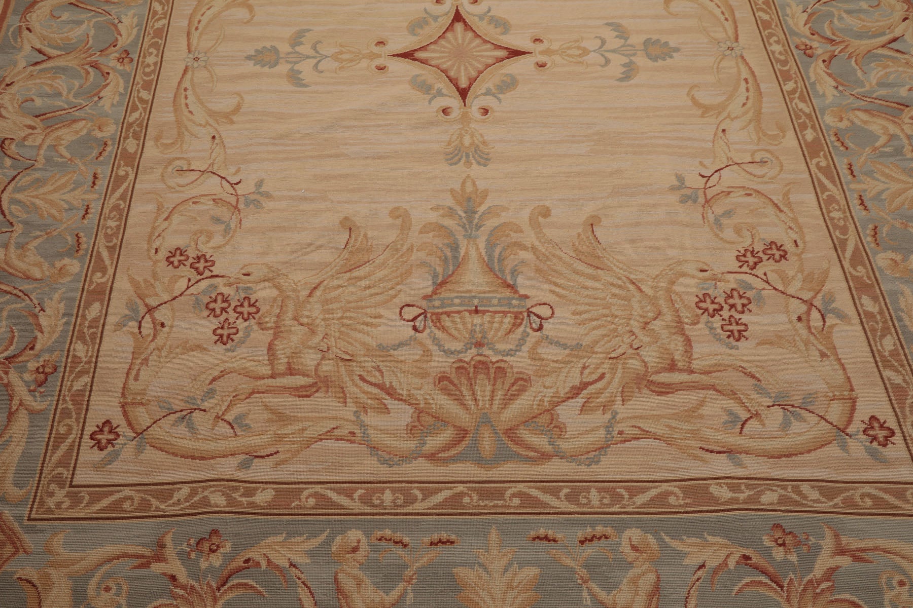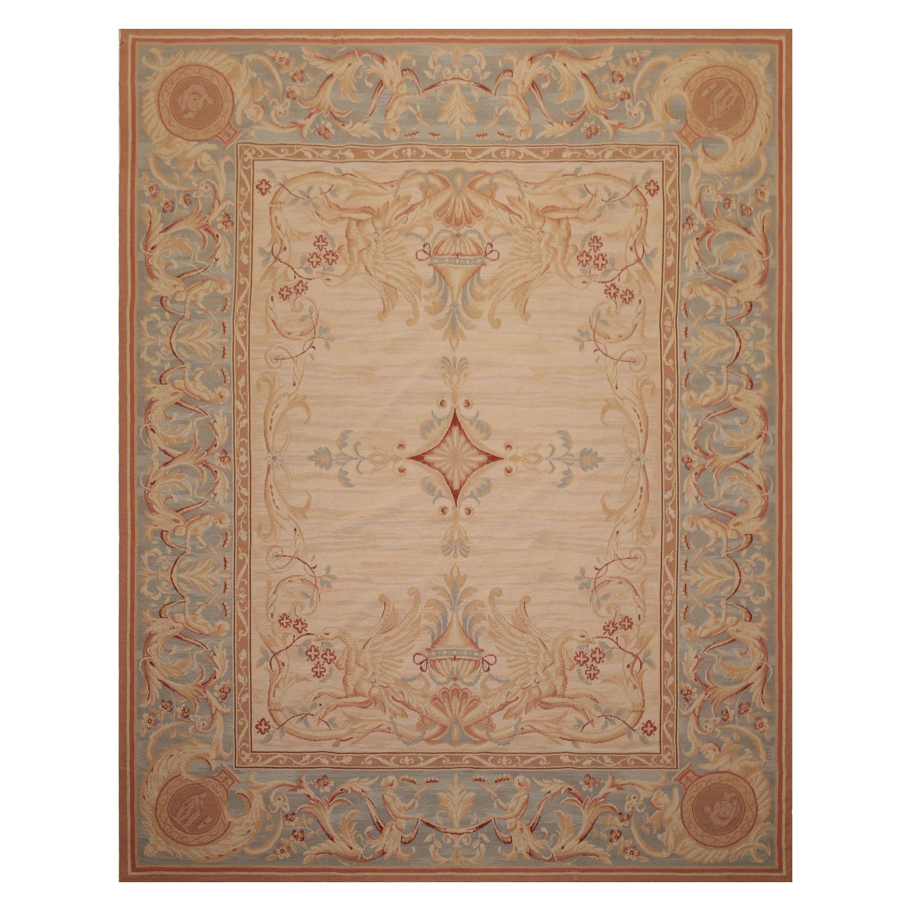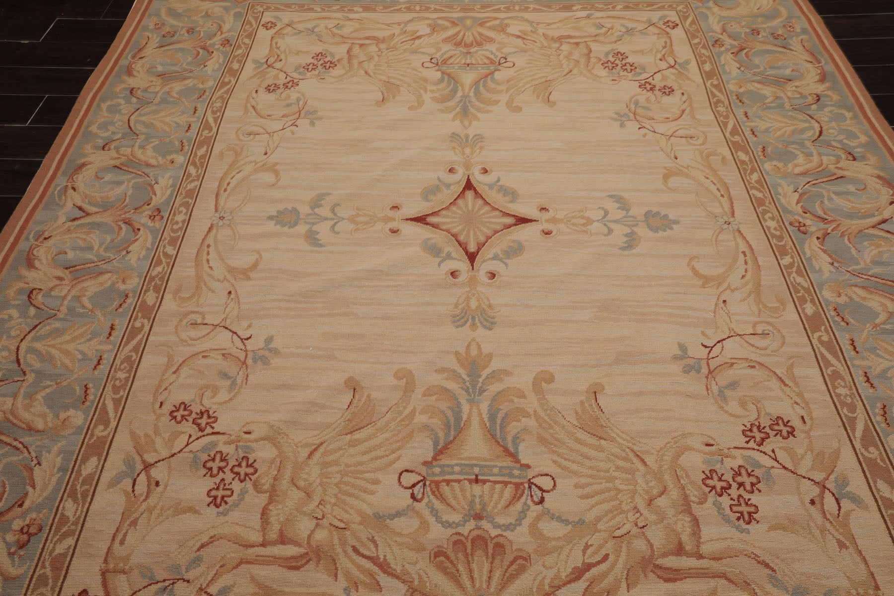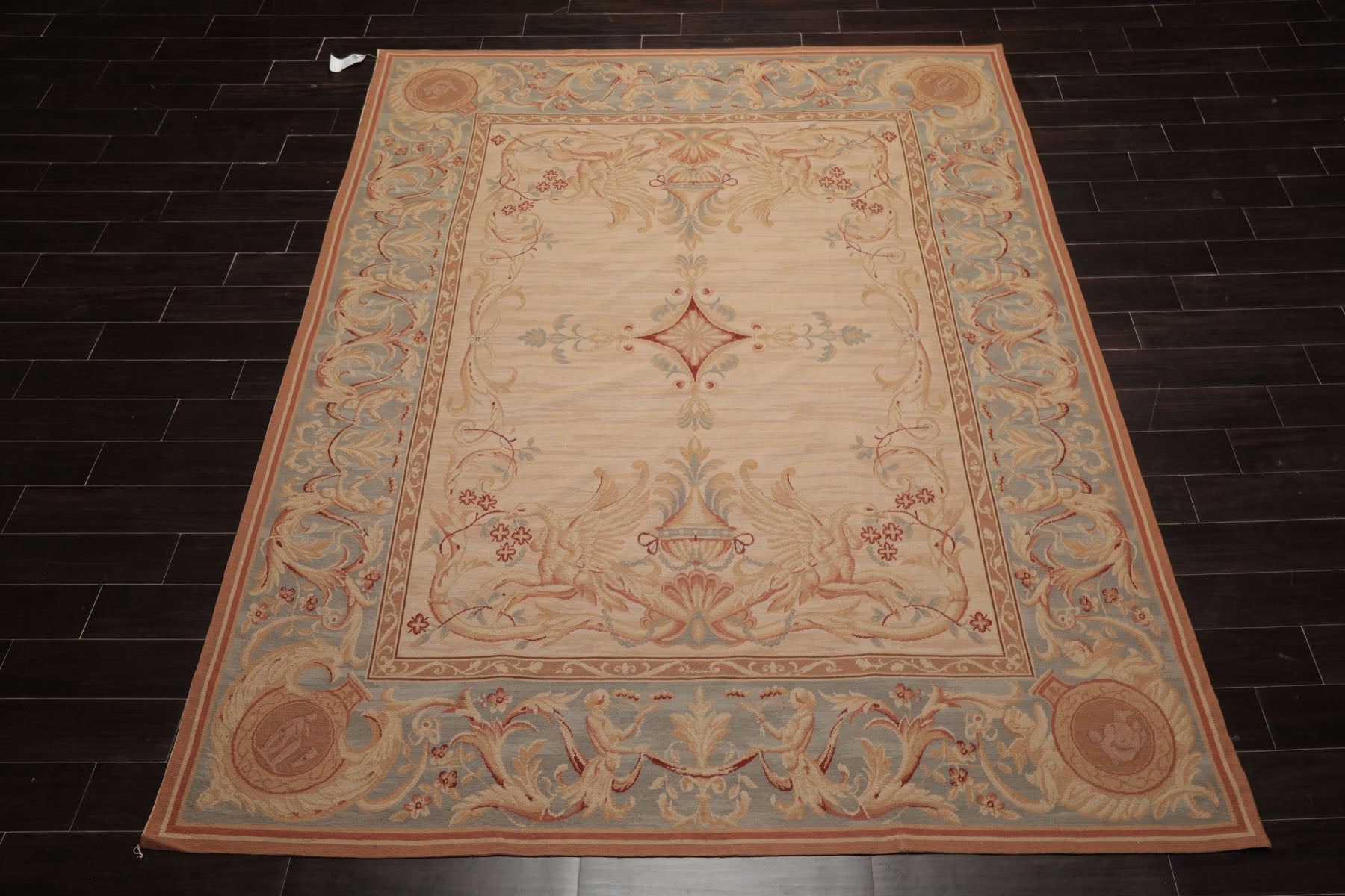 7'6''x9'6'' Hand Woven Wool Beige French Aubusson Needlepoint Traditional Rug