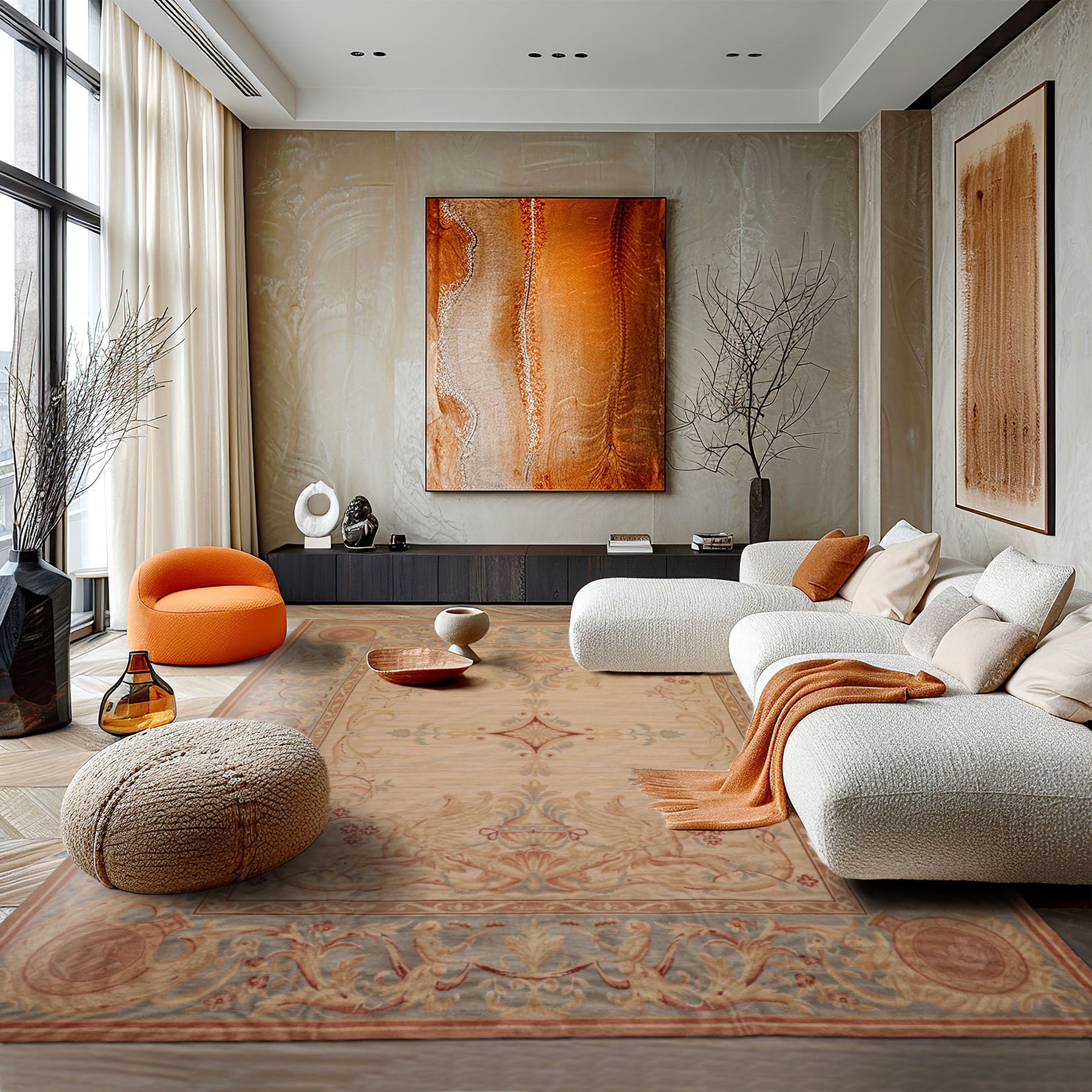Story Behind the Art: French needlepoint rugs originated in 17th–18th century France famously crafted in Aubusson and Savonnerie workshops for royal and aristocratic interiors. Featuring floral medallions and elegant scrollwork they were hand-stitched onto canvas using fine petit and gros point techniques. These rugs were heavily influenced by classical European art featuring floral medallions scrollwork garlands and pastel palettes. They were often used in palaces châteaux and salons woven with meticulous craftsmanship using the petit point and gros point techniques. By the late 20th century China became a major producer of French-style needlepoint rugs. Using centuries-old weaving and embroidery skills Chinese artisans began replicating Aubusson and Savonnerie designs on a global scale. These rugs are hand-stitched or handwoven often using wool on cotton canvas and maintain the look of antique French originals at more accessible price points.