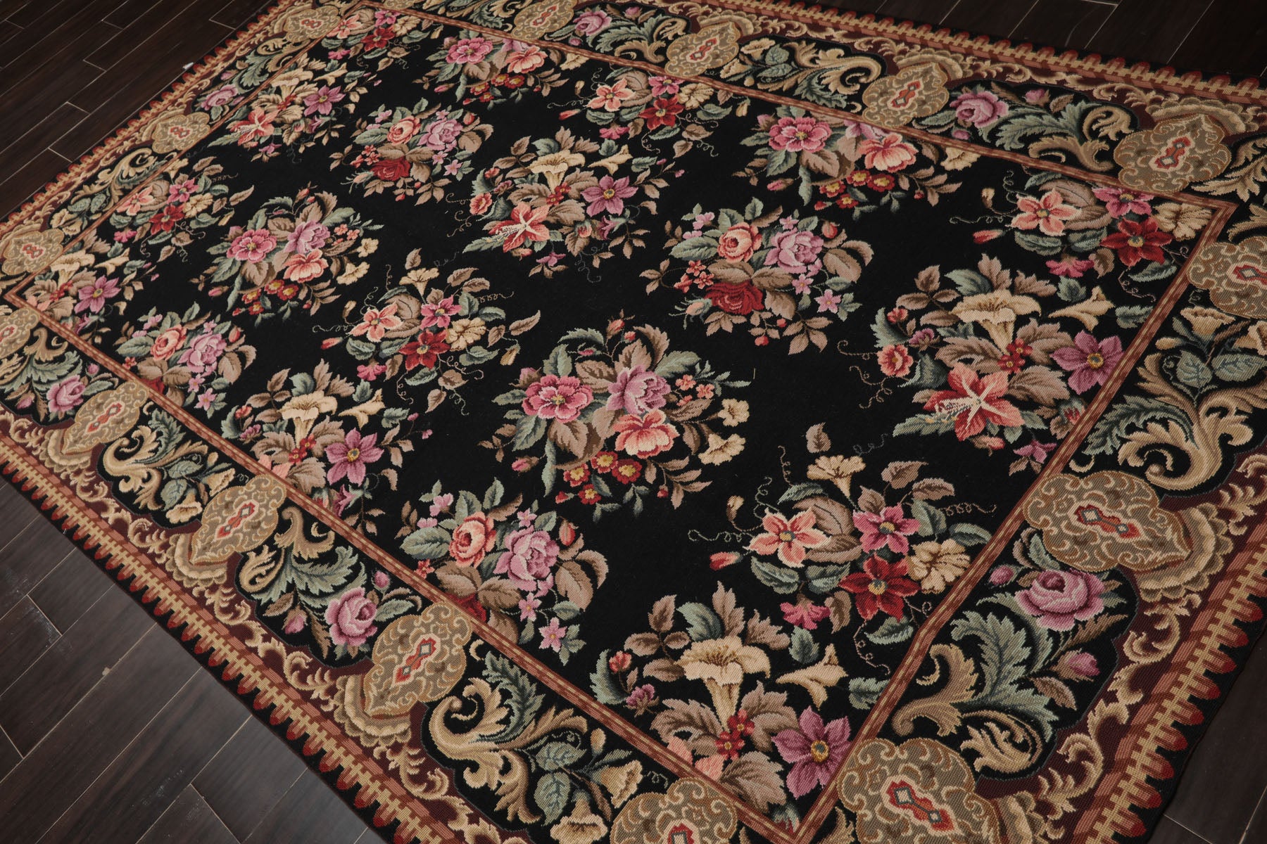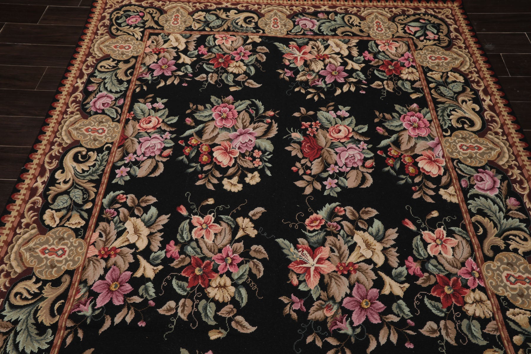6x9 Hand Woven Wool Black Aubusson Needlepoint Traditional Rug