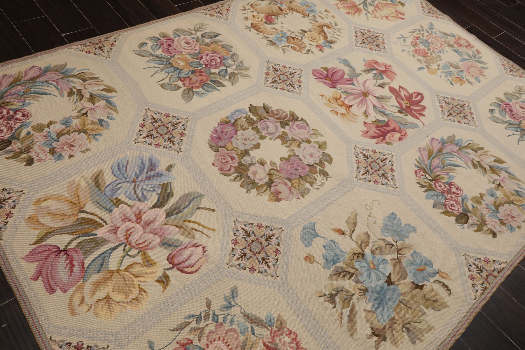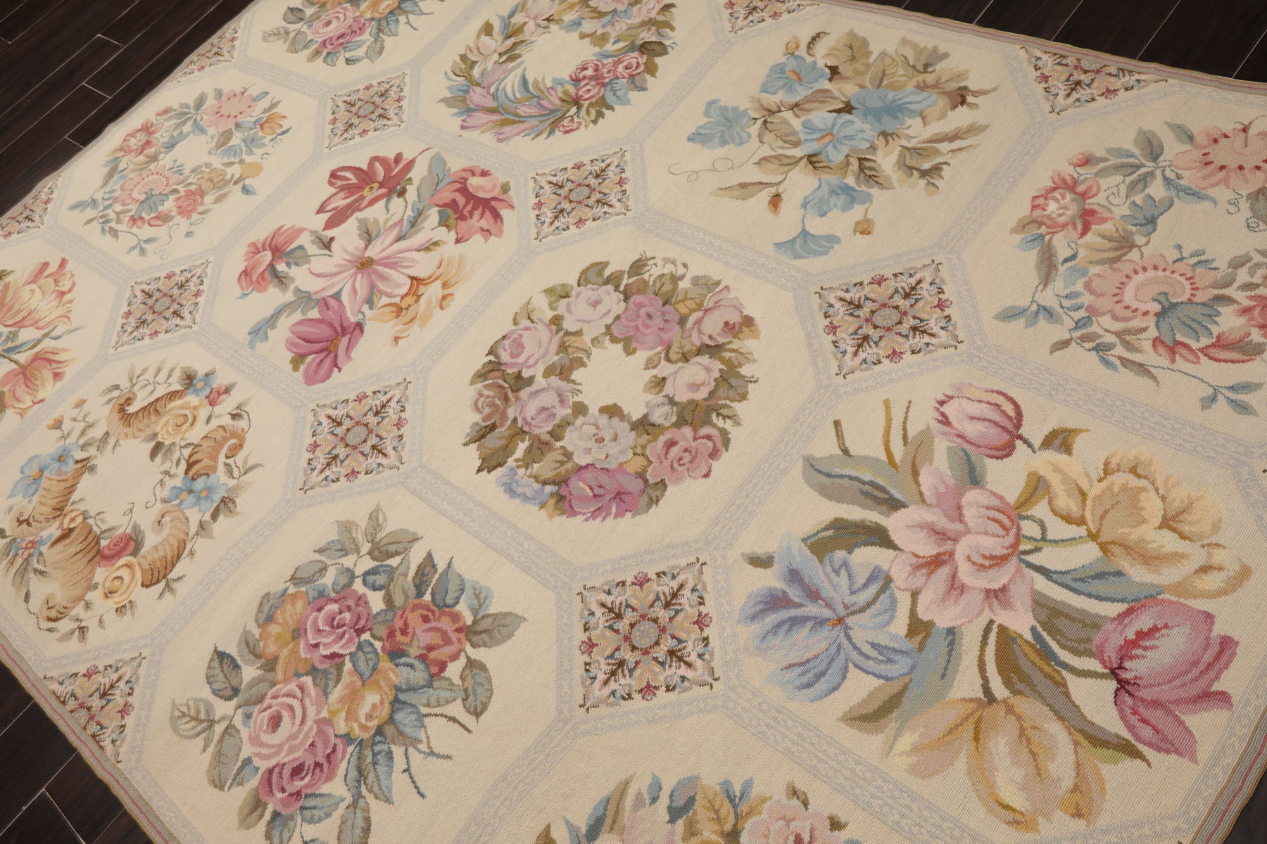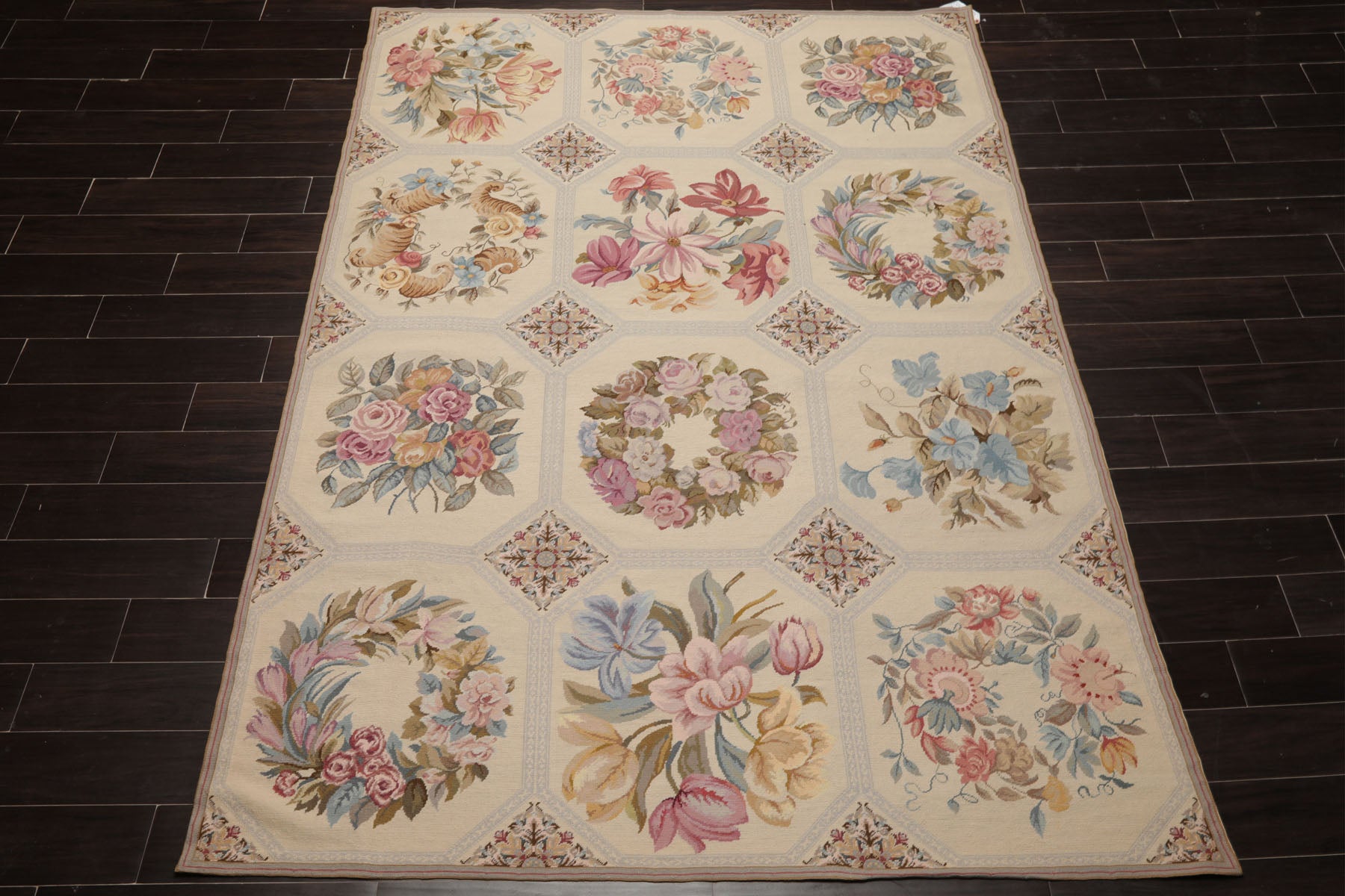 6'3''x9'3'' Hand Woven Wool Ivory French Needlepoint Traditional Rug