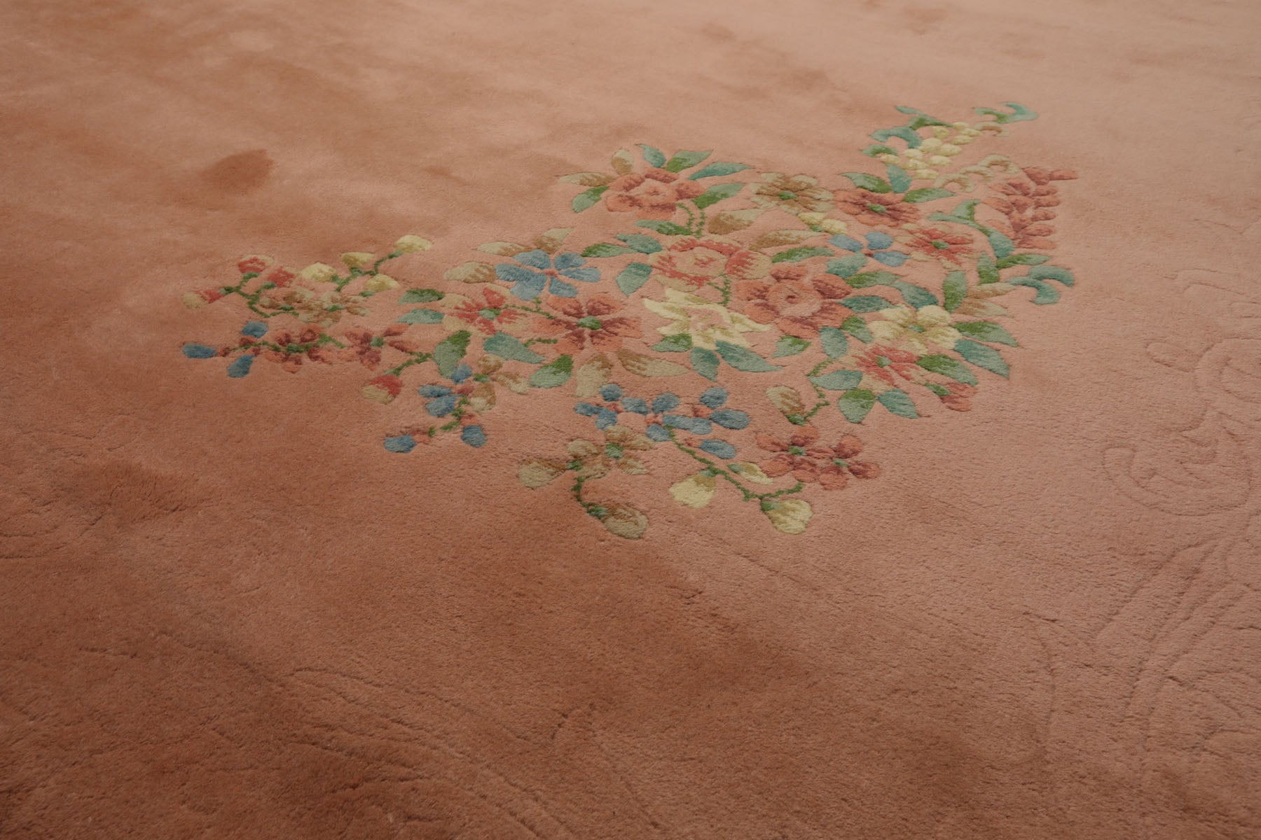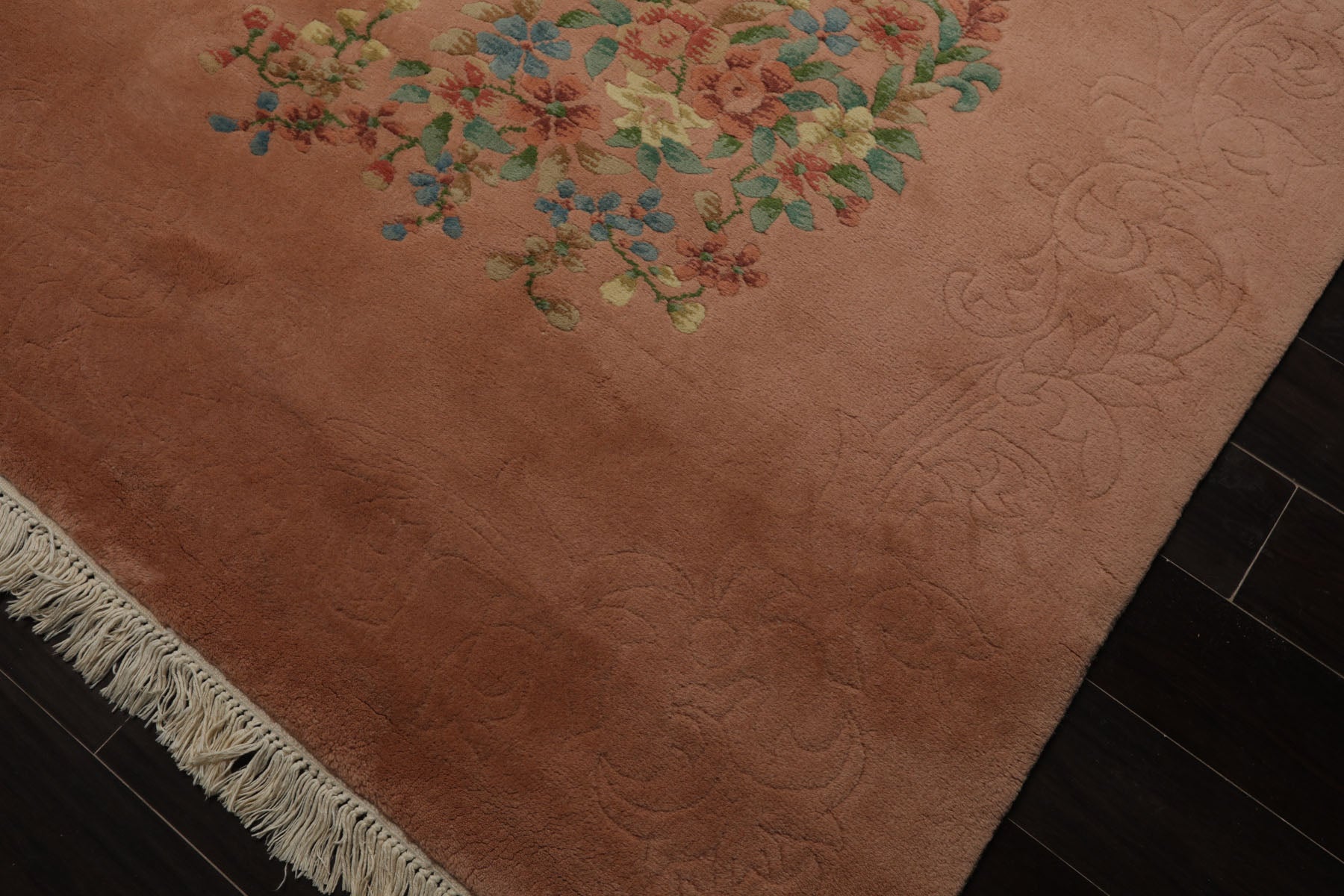 Story Behind the Art: Savonnerie rugs trace their origins to the renowned Savonnerie Manufactory in France the most prestigious producer of knotted pile rugs during its golden era from 1650 to 1685. The name "Savonnerie" has since come to represent a distinct tradition of French rug-making known for its luxurious textures regal aesthetics and intricate artistry. These rugs often feature framed medallions either pictorial or armorial surrounded by lush bouquets leafy rinceaux and elaborate floral motifs typically set against rich backgrounds of deep blue black or brown and enclosed within multiple ornate borders. What sets French Aubusson Savonnerie rugs apart is their pioneering use of depth perspective a technique developed by 17th-century French artists and weavers to create a sense of three-dimensionality in the design. Characterized by symmetrical knots vivid color palettes and exuberant patterns these rugs remain timeless symbols of elegance. Today their legacy lives on through skilled reproductions crafted in India Pakistan China and Iran allowing collectors and design enthusiasts to continue enjoying this classic French art form.