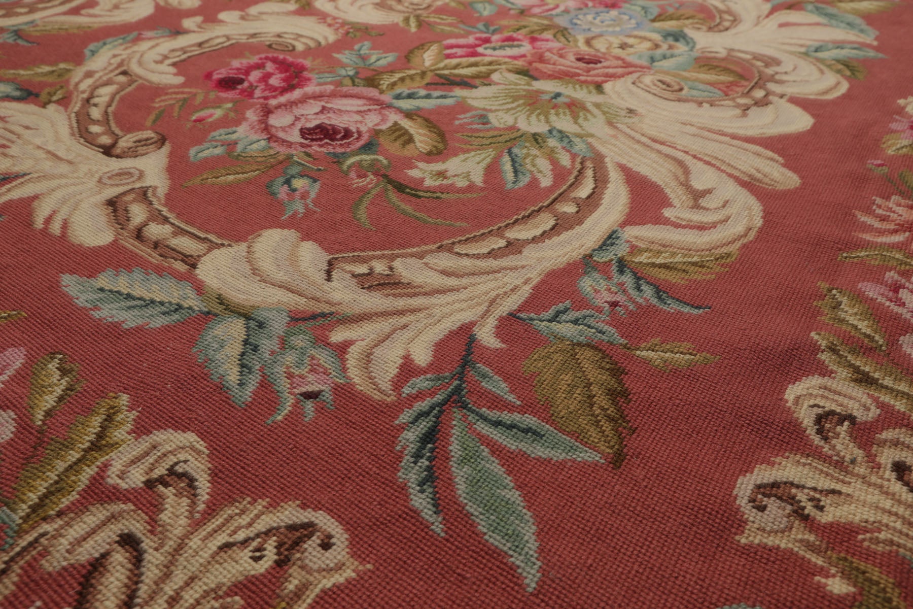 Story Behind the Art: French needlepoint rugs originated in 17th–18th century France, famously crafted in Aubusson and Savonnerie workshops for royal and aristocratic interiors. Featuring floral medallions and elegant scrollwork, they were hand-stitched onto canvas using fine petit and gros point techniques. These rugs were heavily influenced by classical European art, featuring floral medallions, scrollwork, garlands, and pastel palettes. They were often used in palaces, chateaux, and salons, woven with meticulous craftsmanship using the petit point and gros point techniques. By the late 20th century, China became a major producer of French-style needlepoint rugs. Using centuries-old weaving and embroidery skills, Chinese artisans began replicating Aubusson and Savonnerie designs on a global scale. These rugs are hand-stitched or handwoven, often using wool on cotton canvas, and maintain the look of antique French originals at more accessible price points.
