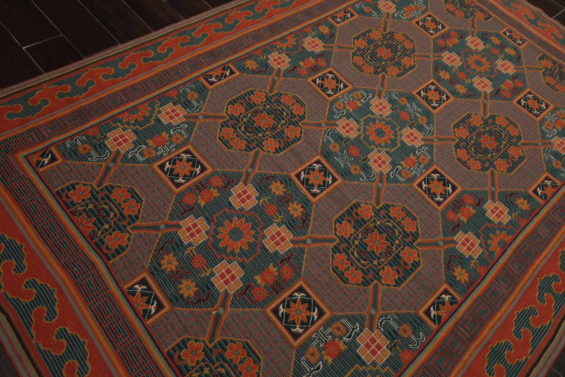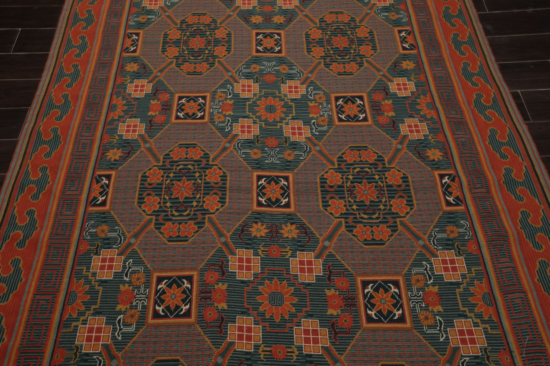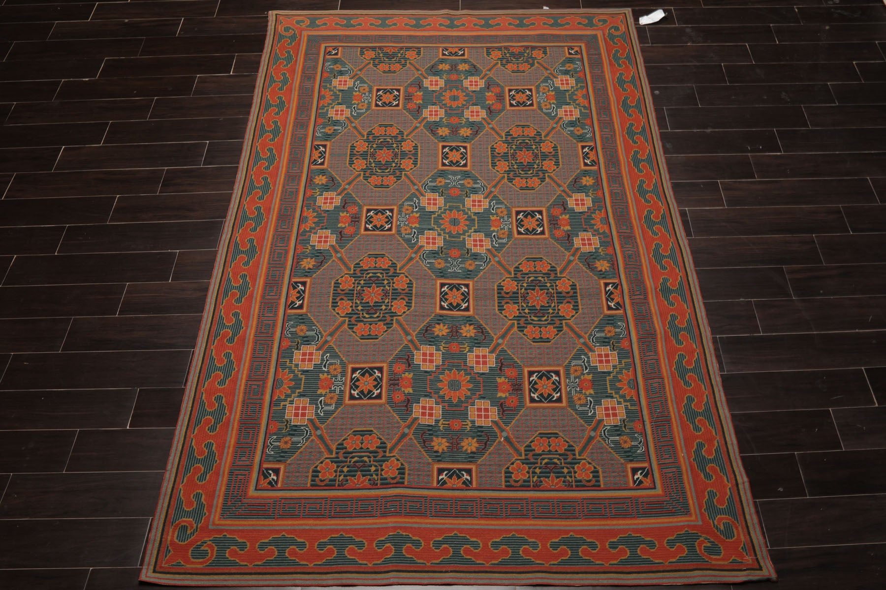 5'10''x9 Hand Woven Wool Teal French Needlepoint Art Deco Rug