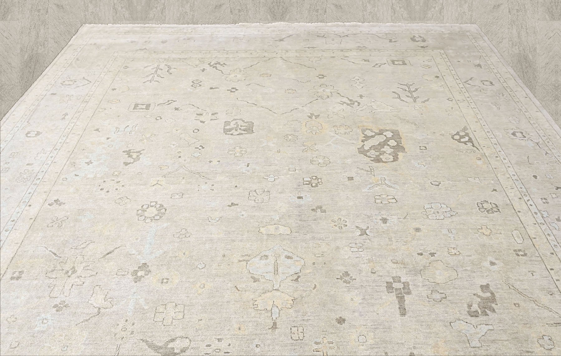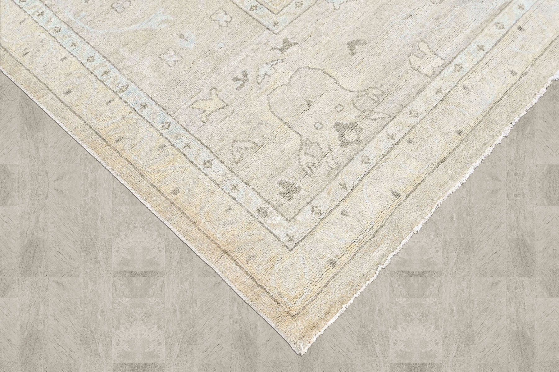 13x19 Hand Knotted Wool Beige, Gray Oushak Transitional Rug