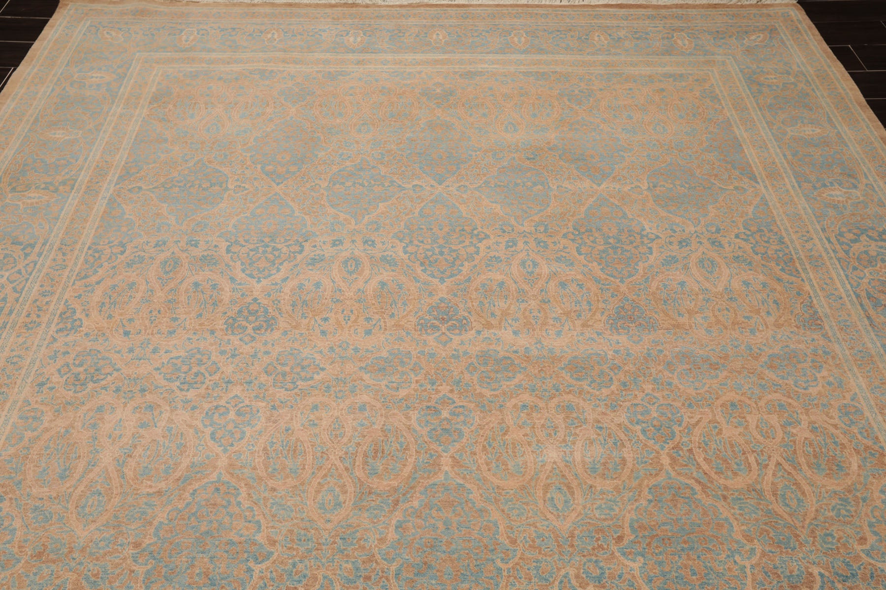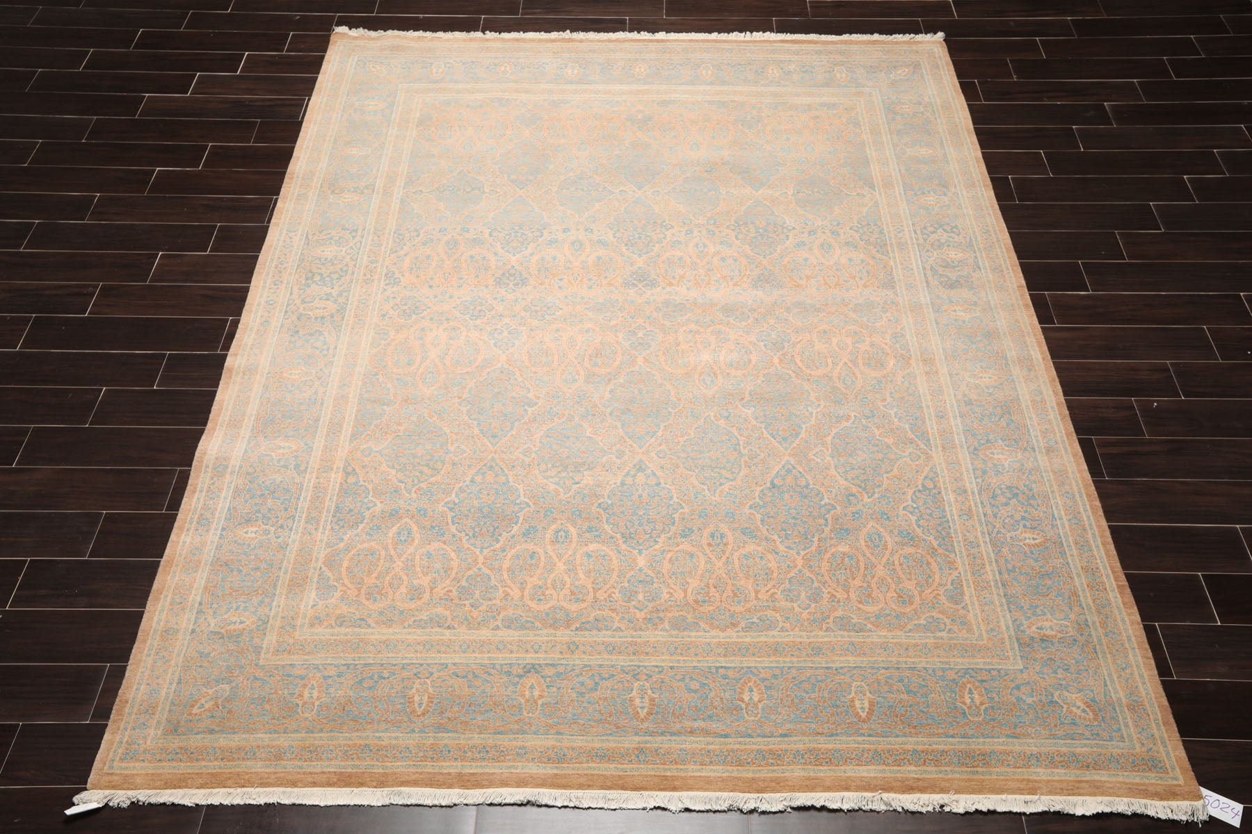 8x10 Beige Tan Aqua Hand Knotted Pak Persian 250 KPSI Wool Area Rug