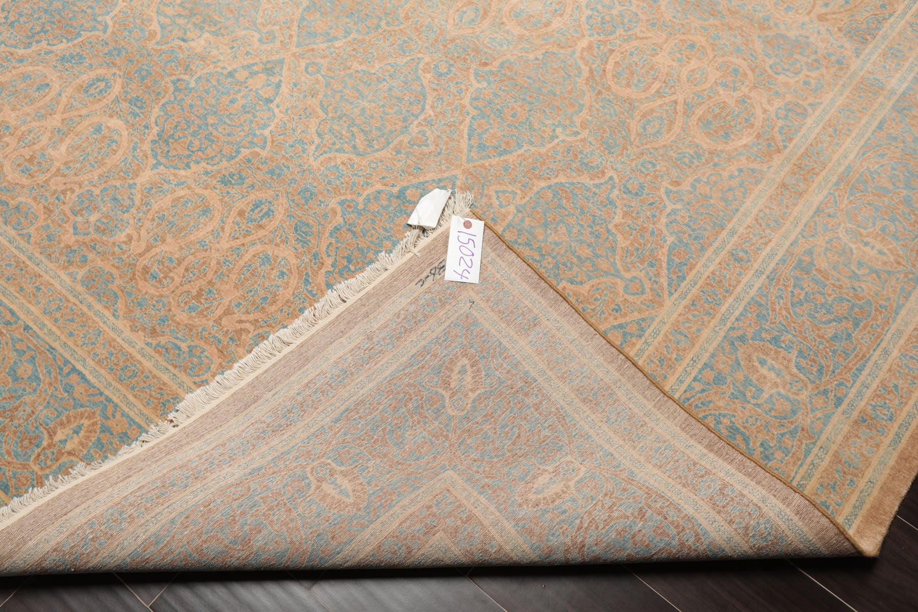 This 8x10 hand knotted Pak Persian area rug is crafted in Pakistan from 100% wool and features a dense 250 KPSI construction with a plush 0.5 inch pile. Designed in the classic Persian tradition, the rug showcases an elegant allover pattern with refined detailing and a softly balanced layout that feels both timeless and versatile.The color palette is composed of warm beige and tan tones layered with gentle aqua accents and subtle multicolor highlights, creating a calm, lightly aged appearance. The muted hues and intricate patterning give the rug a sophisticated presence without overwhelming the space, making it well suited for both traditional and transitional interiors.