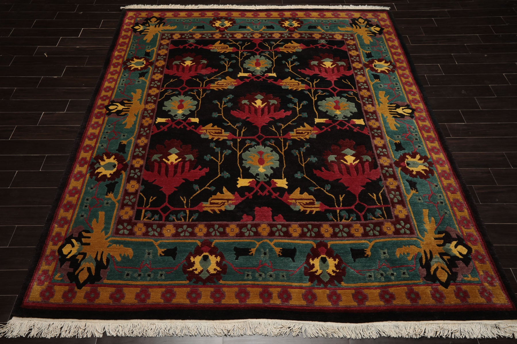 Before you is a beautiful hand-knotted Tibetan rug by Tufenkian a bold yet elegant statement piece crafted in Nepal from fine Himalayan wool with a plush .75" pile. The Arts & Crafts–inspired design features a rich palette of Charcoal Turquoise Rose Gold Brown and Aubergine softened by a Swiss wash for a vintage timeworn look. Vibrant yet refined the rug balances color and texture beautifully making it ideal for both modern and transitional interiors.