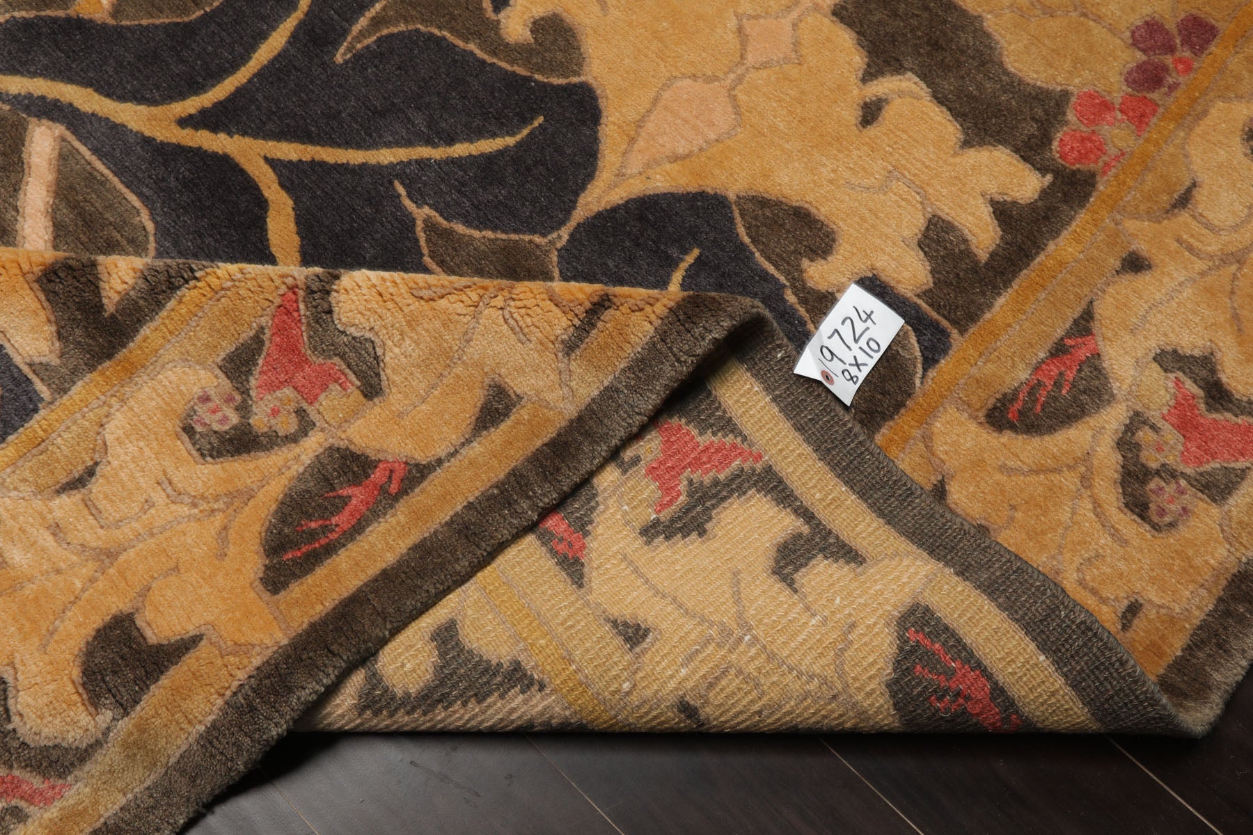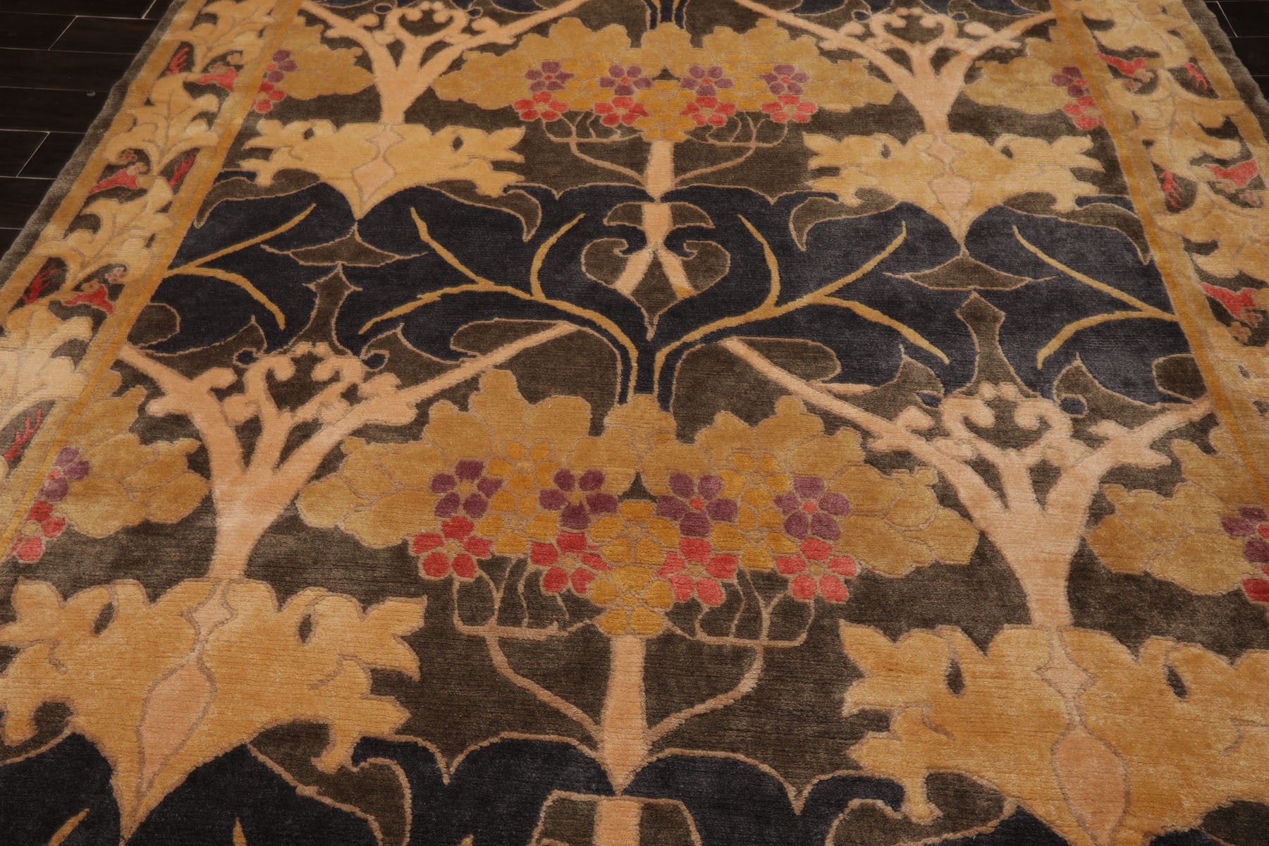8x10 Hand Knotted Wool Gray Tibetan Arts & Crafts William Morris Rug