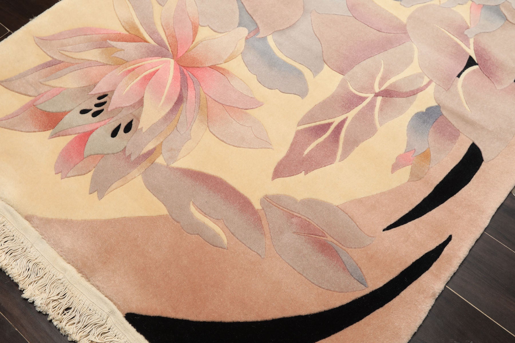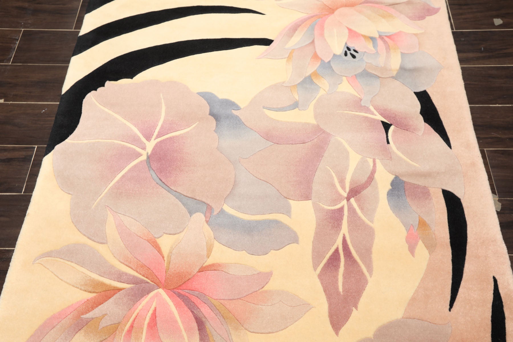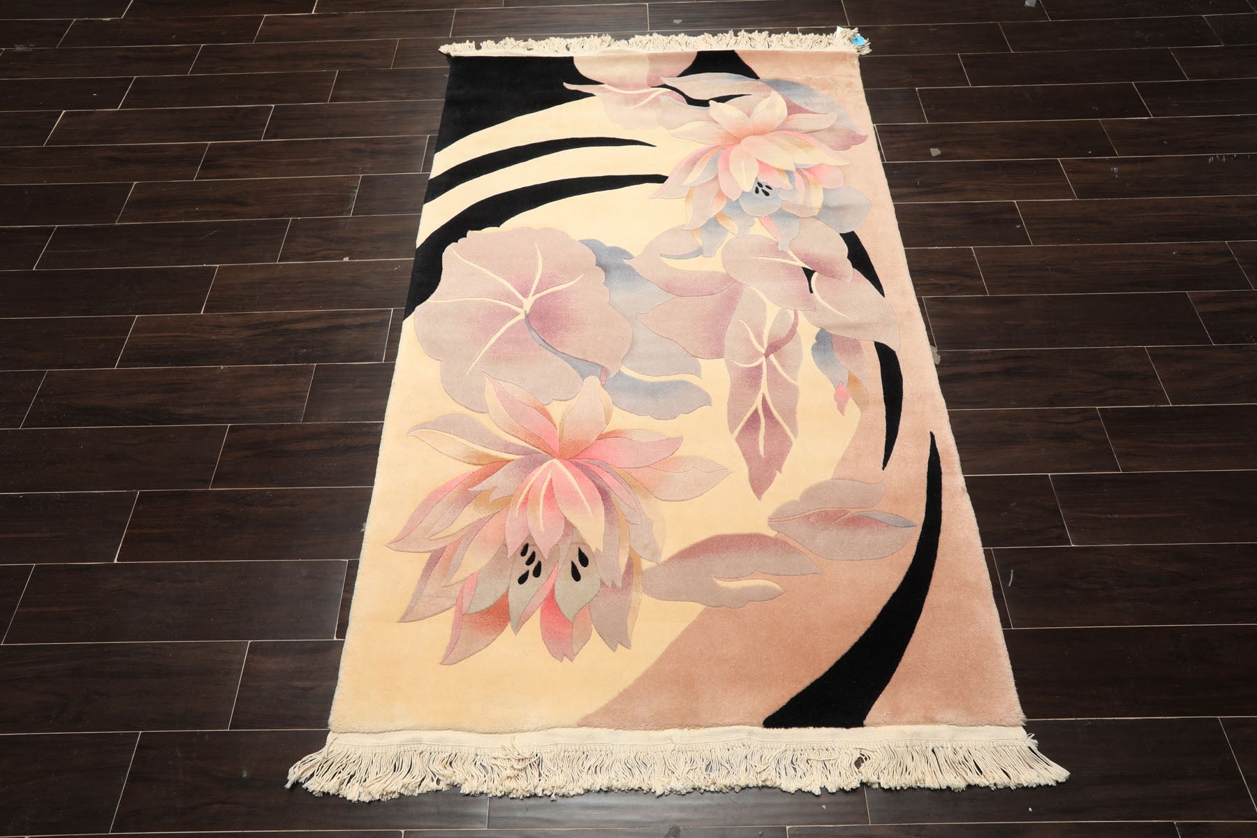 4x6 Hand Knotted Wool Ivory Chinese Art Deco Transitional Floral Plush Pile Botanical Rug