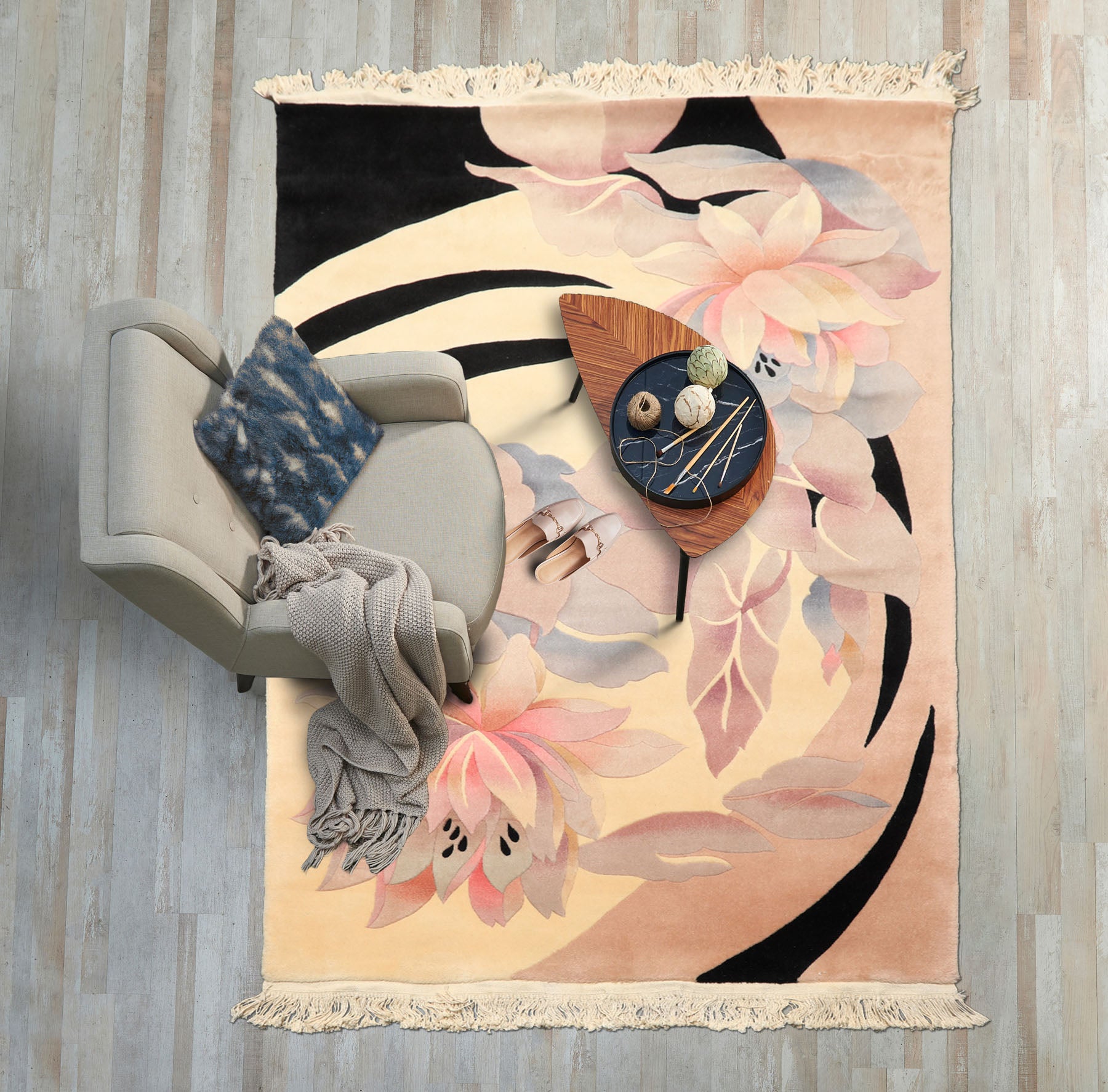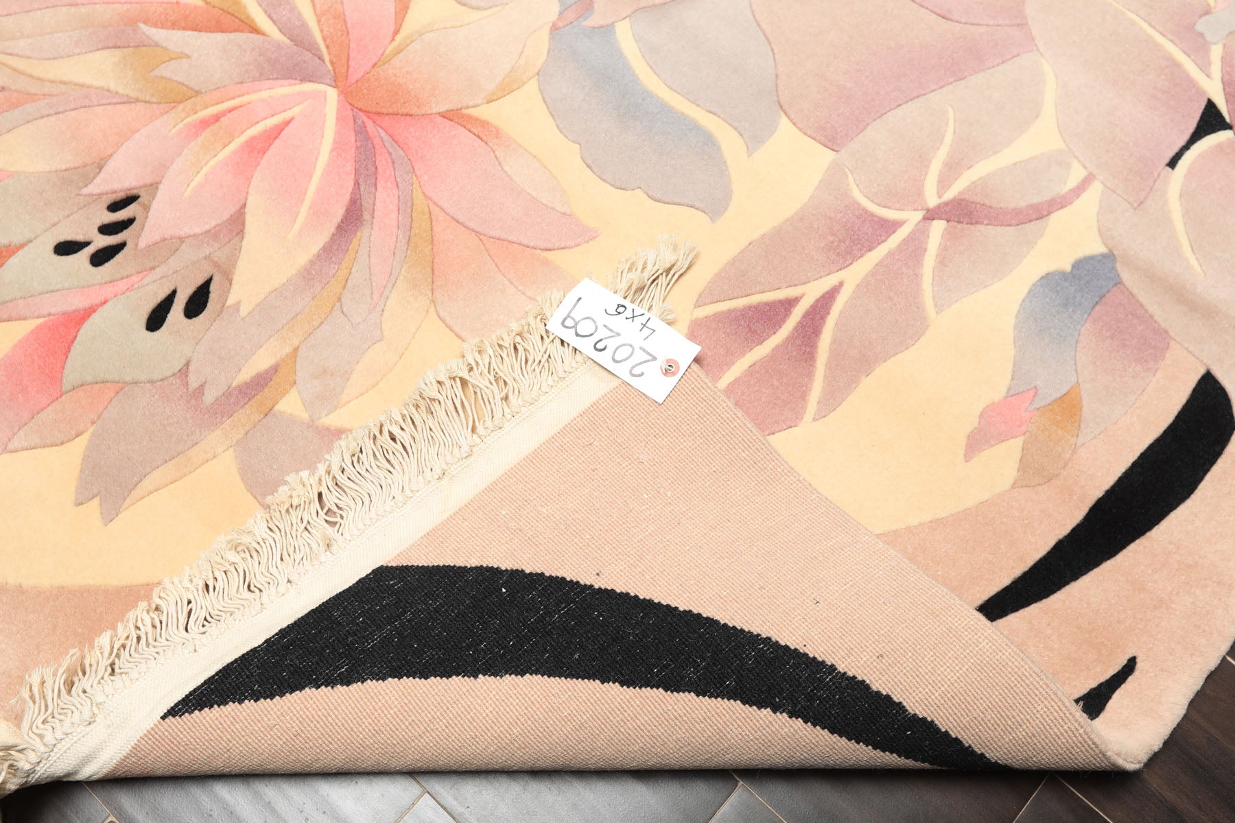 Understated elegance defines this 4x6 hand knotted Chinese Art Deco rug, where fluid floral forms meet the soft geometry of early modern design. Woven in wool with a plush cut pile, the rug showcases layered botanical motifs that feel graceful and intentional rather than ornate. An ivory ground sets the stage for refined accents of taupe, lavender, pink, blue, gold, and black, creating a calm yet visually engaging palette. Finished with a cotton foundation for added durability, it offers both comfort and craftsmanship. Ideal for bedrooms, reading corners, or intimate living spaces, this rug works beautifully in transitional interiors that favor subtle color, vintage influence, and timeless decorative appeal.