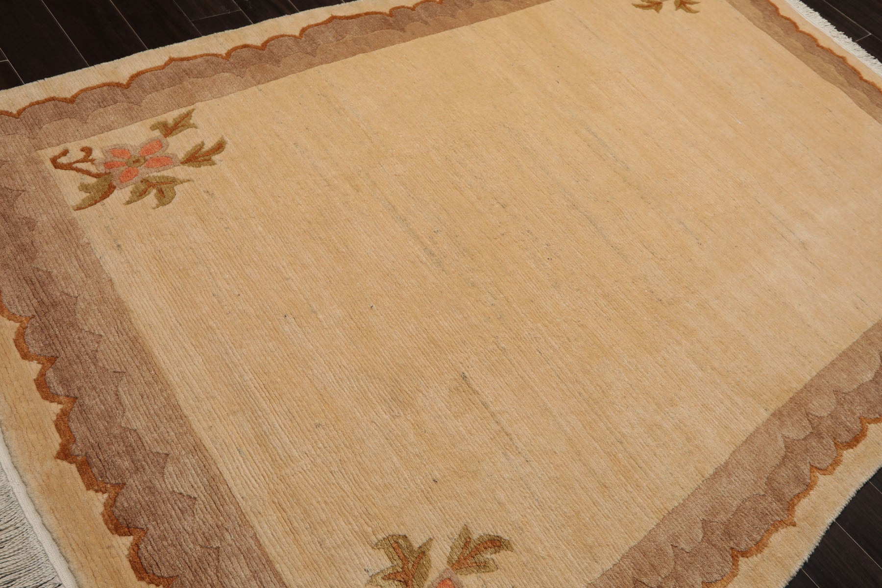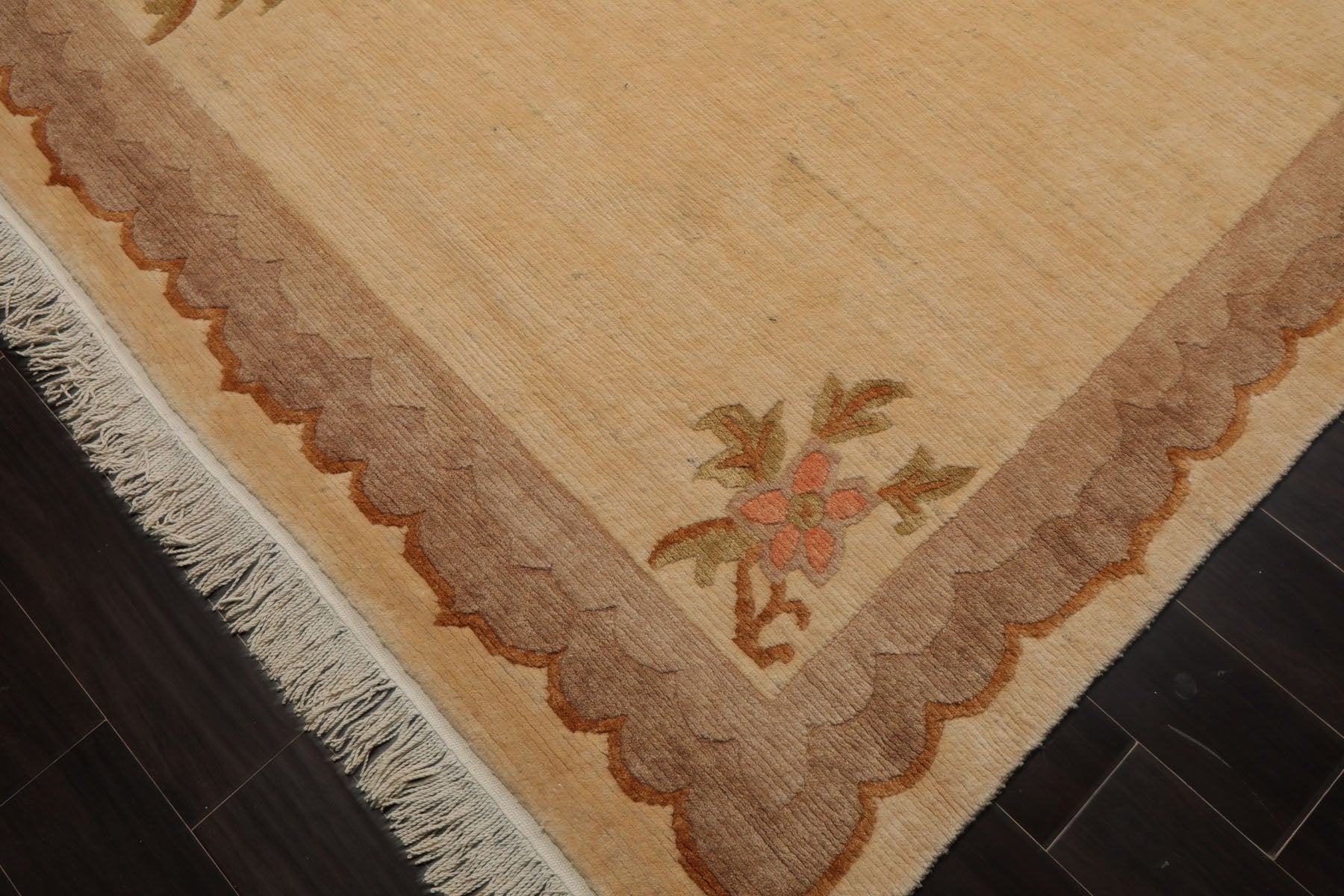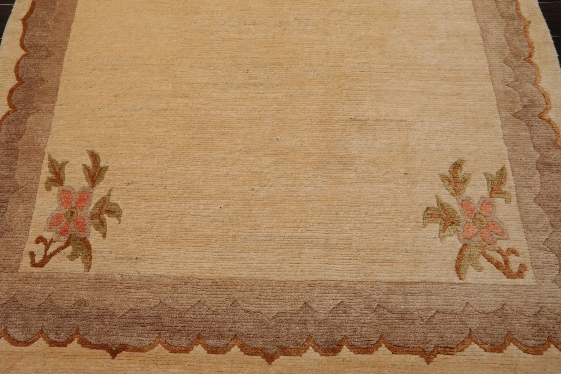 Crafted in Nepal, the Michaelian & Kohlberg hand-knotted Tibetan rug before you embodies European classic elegance with a refined minimal floral design. Made from high-quality wool, it features the renowned Swiss Wash finish, lending the surface a silky sheen and luxurious texture. The warm ivory-tan field is framed with soft taupe and brown scalloped borders, accented by delicate rose and green floral corner motifs. With a medium 0.6" pile, it balances comfort and durability, making it an excellent choice for both traditional and transitional interiors.