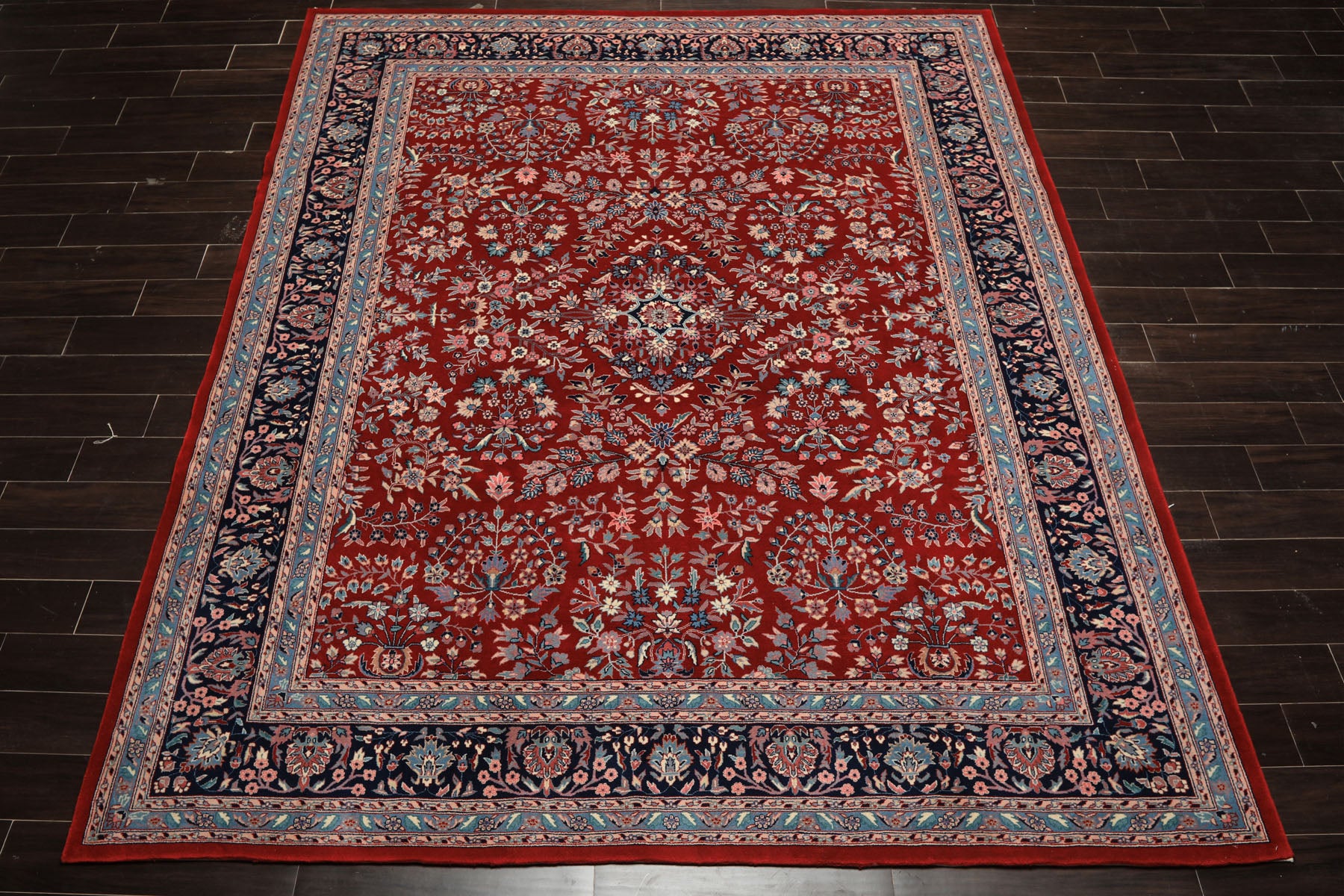 8'2''x10'1'' Hand Knotted New Zealand Wool Red Indo Sarouk Traditional Floral 200 KPSI silky Sheen Rug