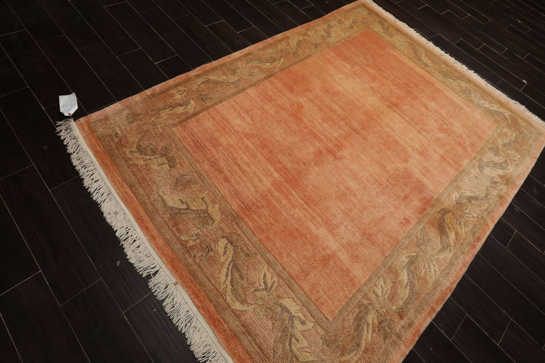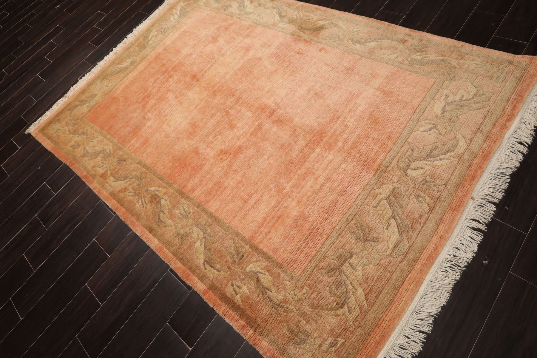 Hand knotted in Nepal for Michaelian & Kohlberg, this Tibetan Art Deco rug is crafted in fine wool with a Swiss Wash finish that enhances its silky sheen. A soft rose field is framed by a muted taupe and sage border with flowing Art Deco leaf motifs, blending simplicity with subtle elegance. The 0.6" pile offers a smooth, velvety texture underfoot, making the rug both durable and inviting. With its understated palette and clean design, the rug brings a touch of modern Art Deco sophistication to living rooms, bedrooms, or contemporary interiors seeking warmth and refinement.