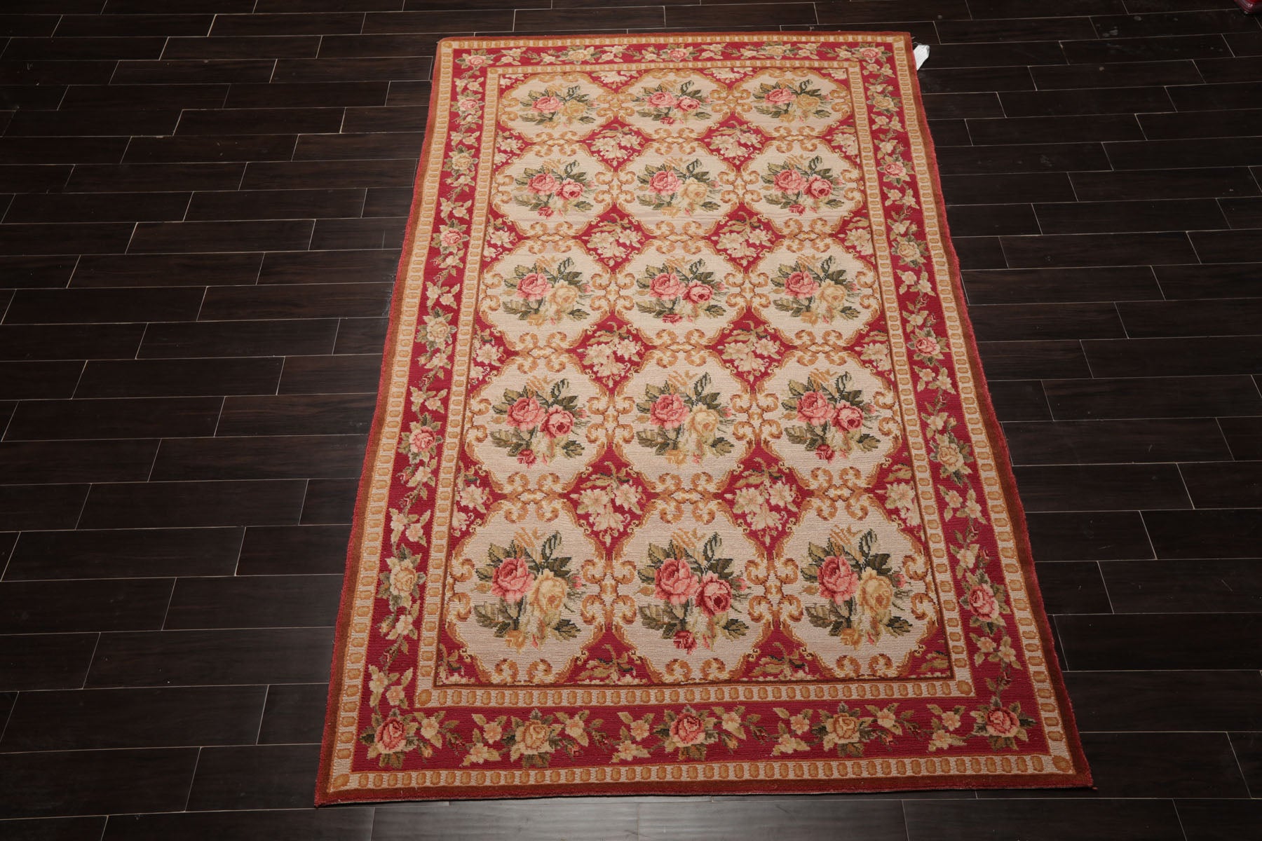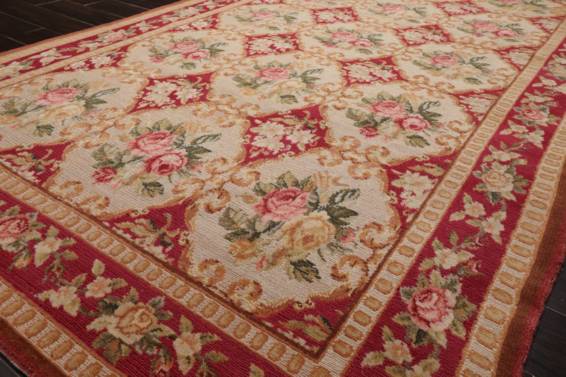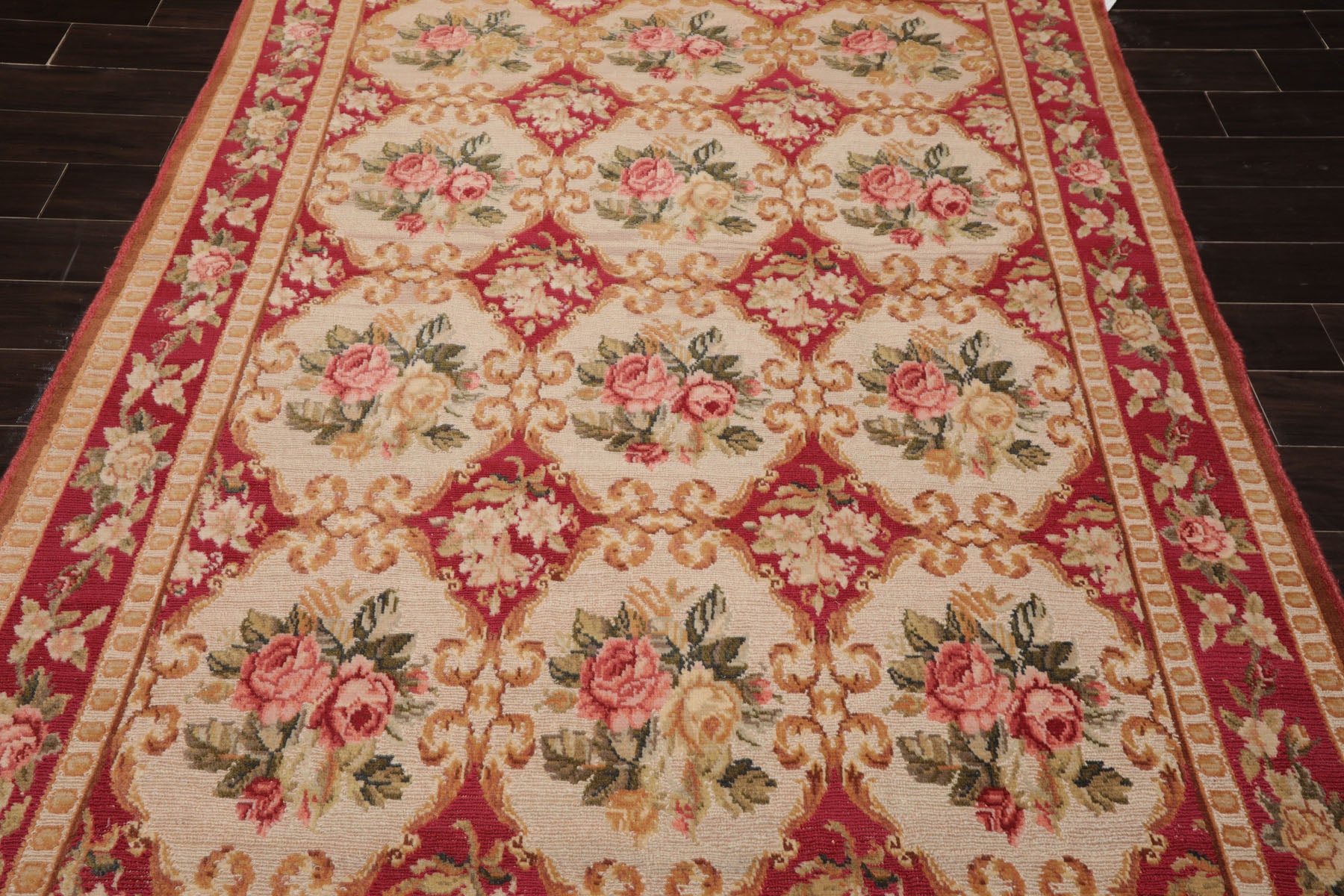 5'10''x9'8'' Hand Knotted Wool Beige Aubusson Savonnerrie Traditional Loop N cut pile Asmara Rug