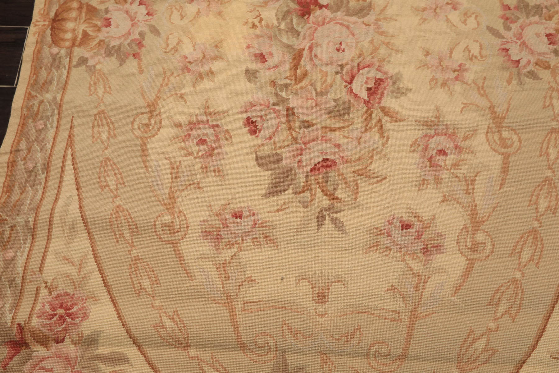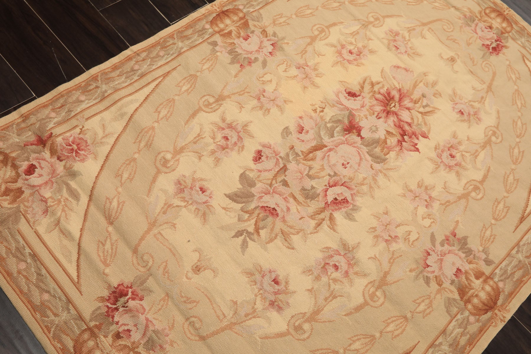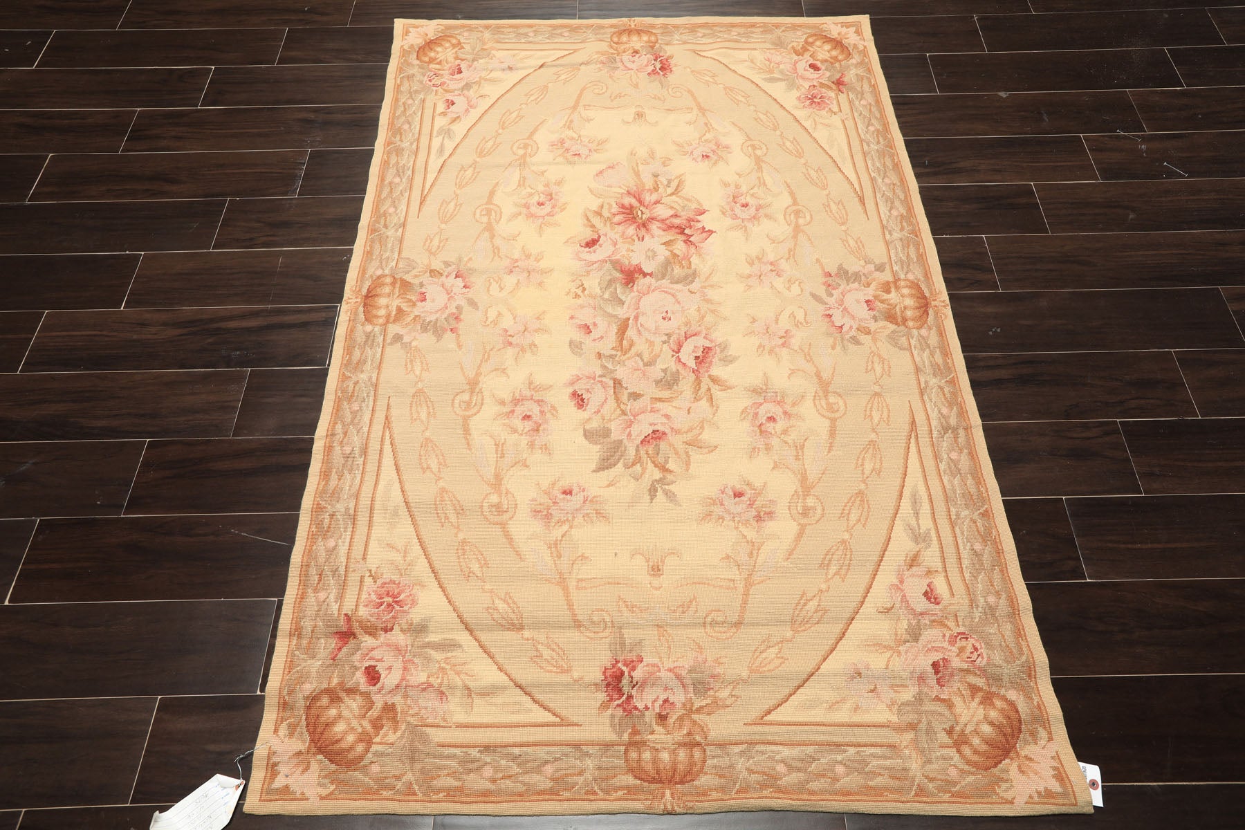 4x6 Hand Woven Wool Beige French Needlepoint Traditional Classic Rug