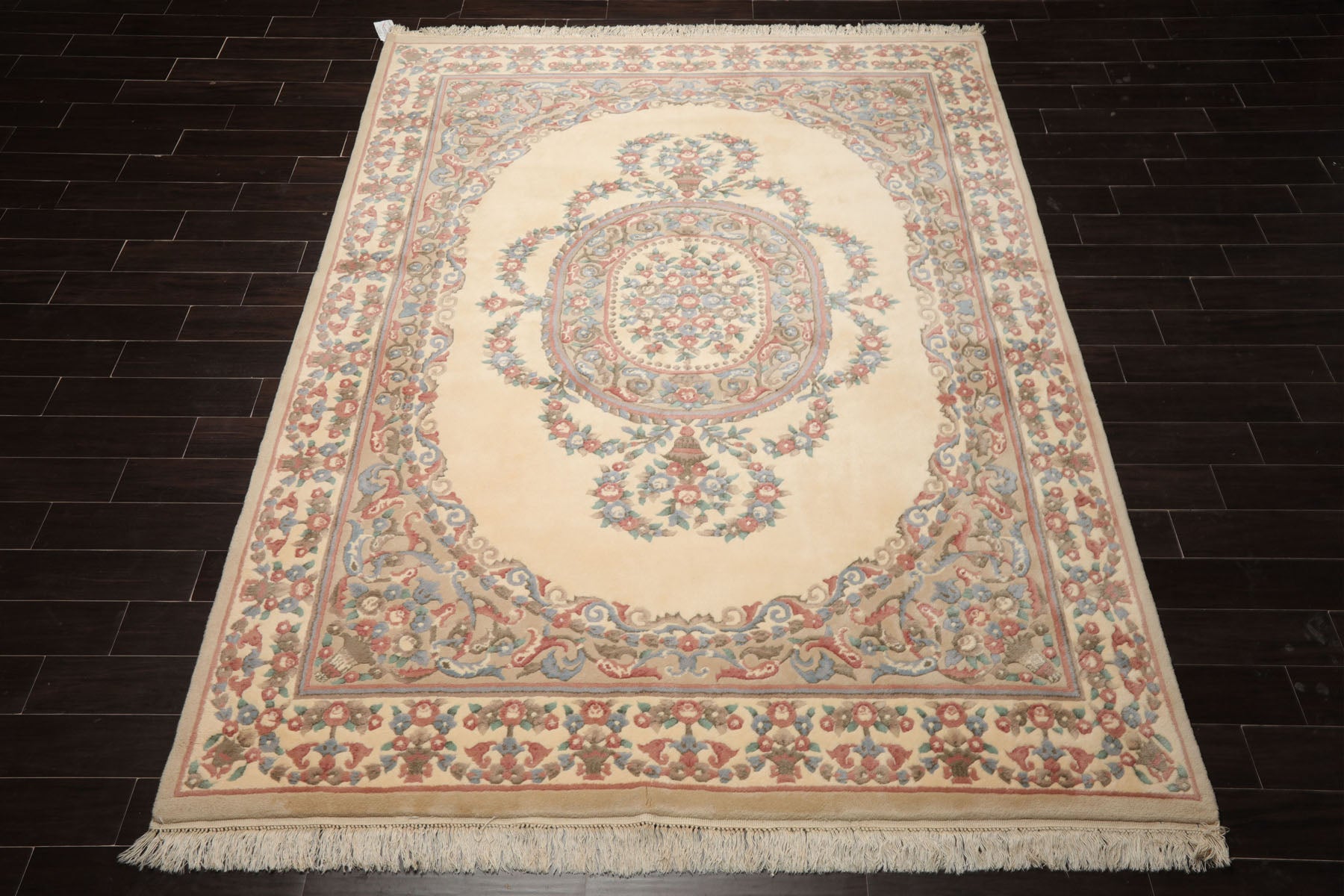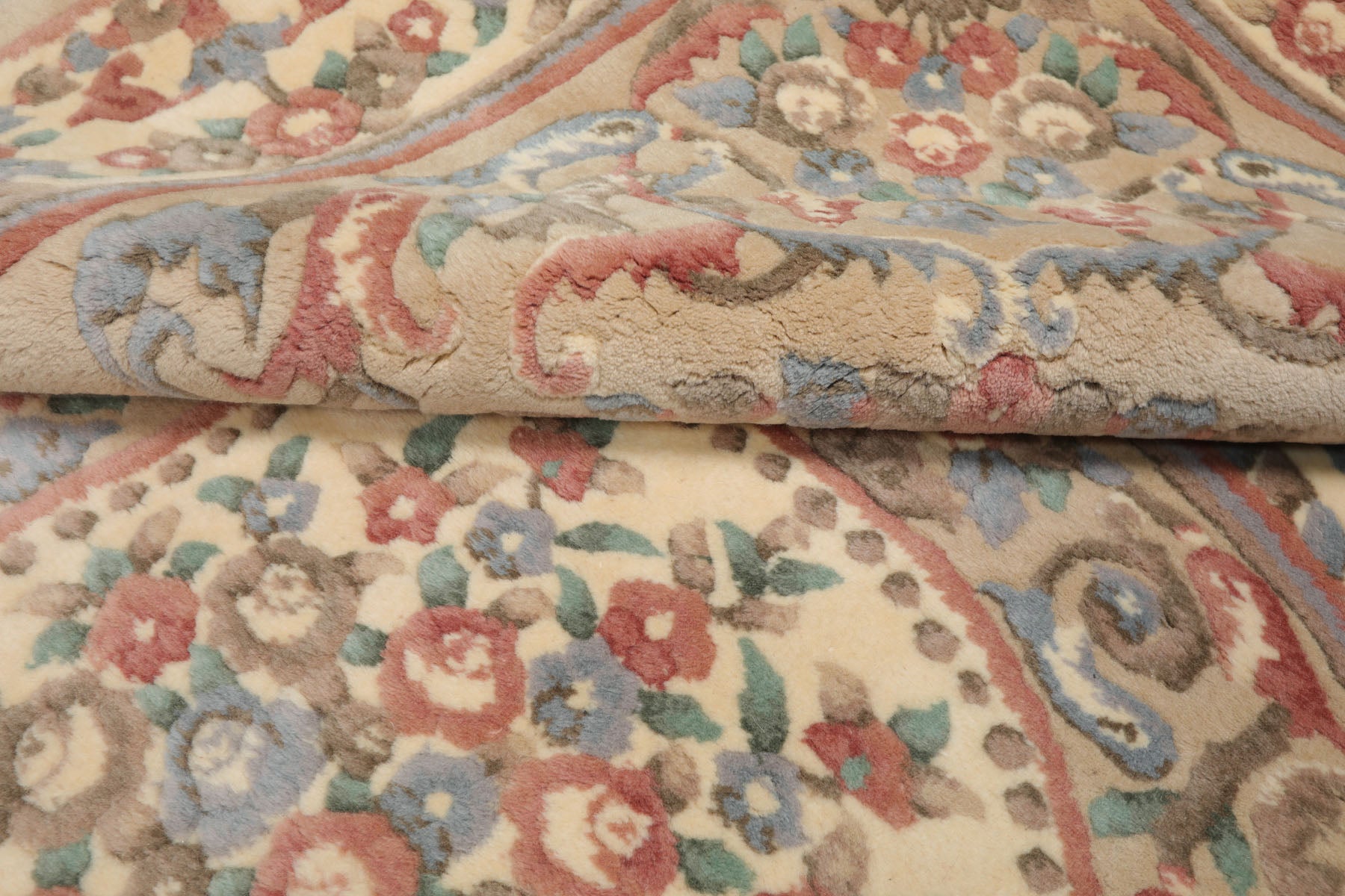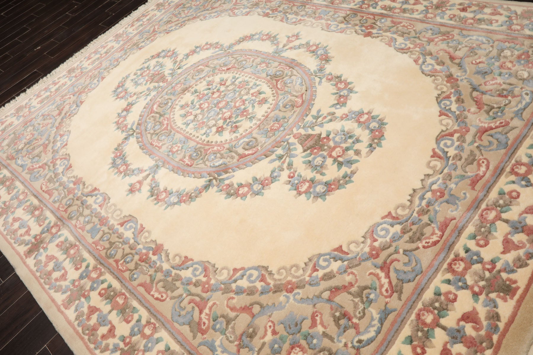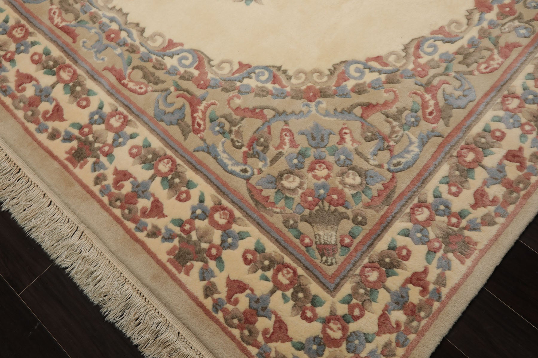 8x10 Hand Knotted Wool Ivory French Aubusson Savonnerie Traditional Plush Pile Silky Sheen Velvety Soft Pile Pande Cameron European Classic Medallion Design Rug