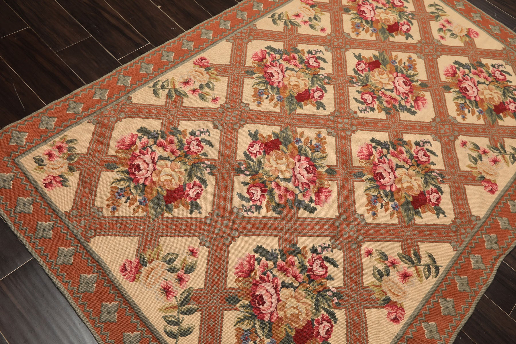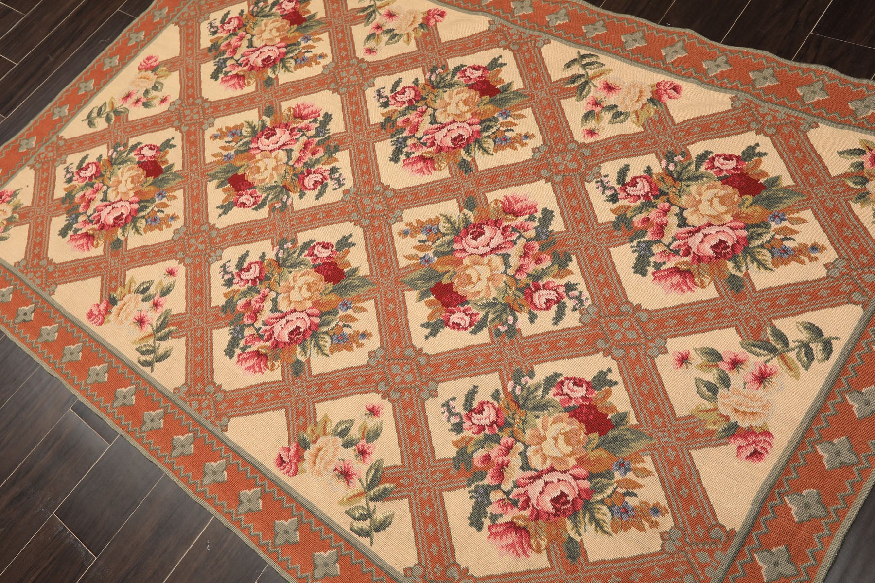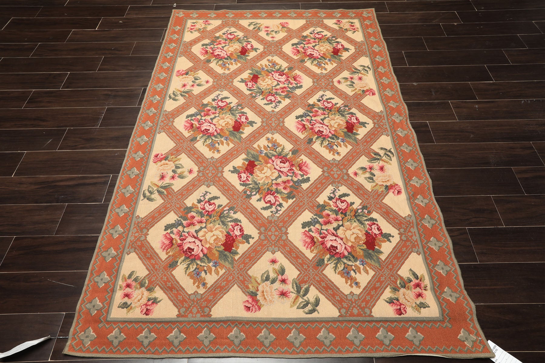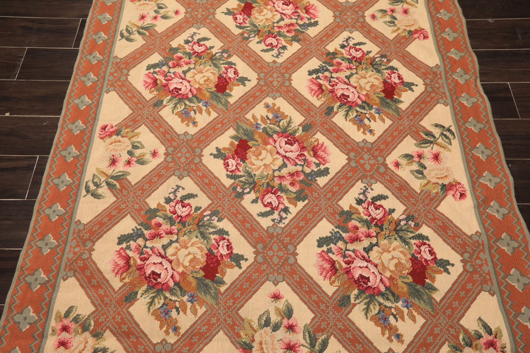4'6"x6'10" Hand Woven Wool Light Peach French Needlepoint Traditional Floral Trellis Rug