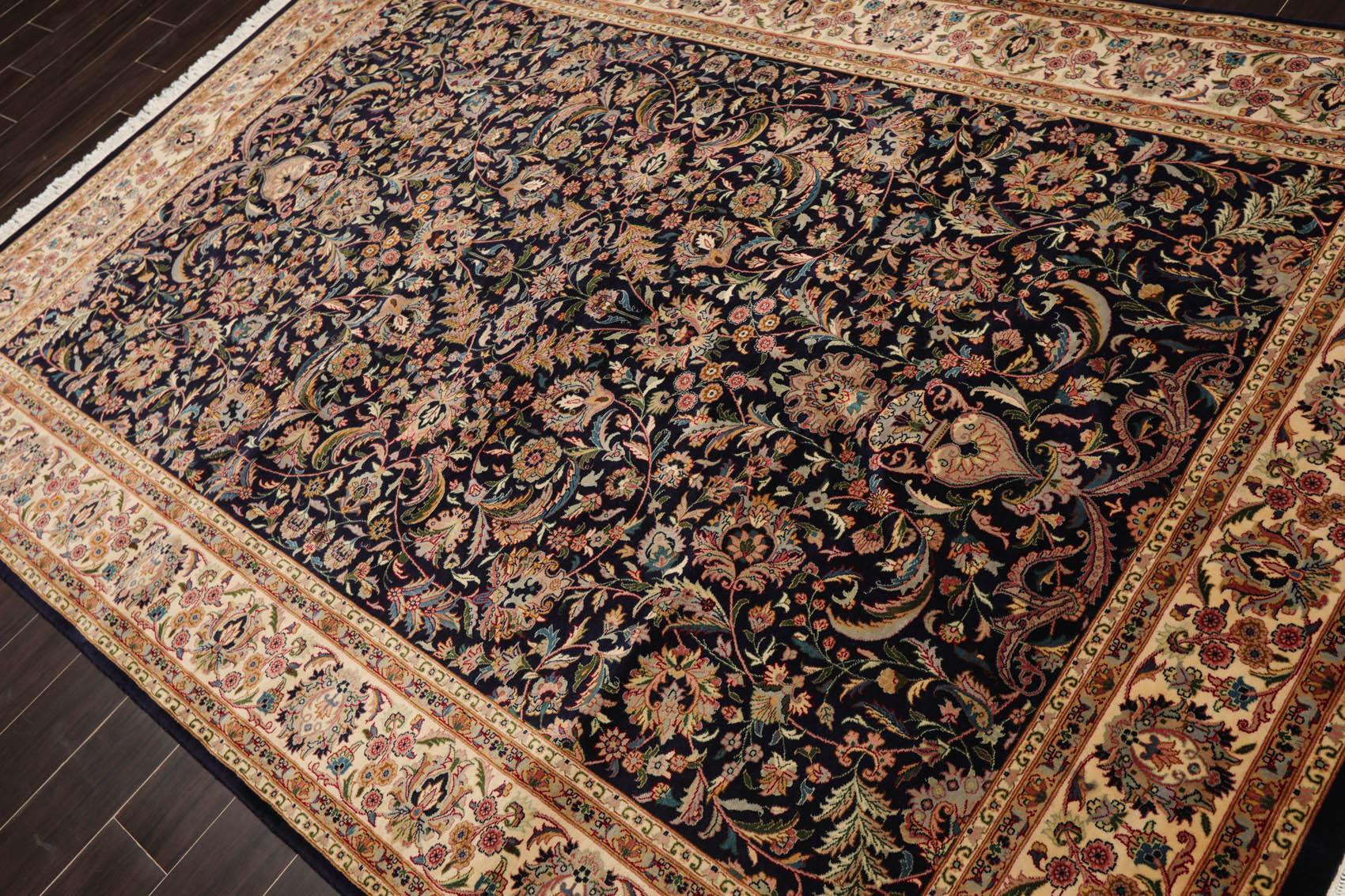 This is a beautiful Navy, Ivory, Blue Color Pak Persian 16/18 design Hand Knotted, Oriental 100% Wool Rug. Its elegant style is easy to decorate with and perfect for living room, dining room, bedroom or anywhere in the residence and office.