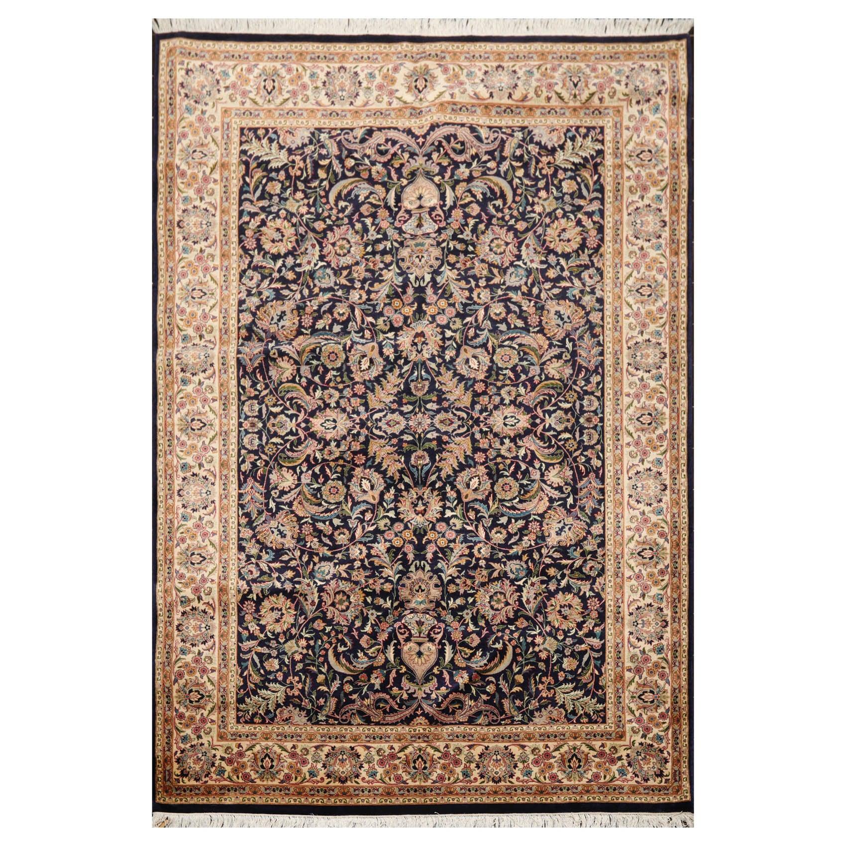 6'1" x 9'1" Hand Knotted Wool Nain 16/18 Pak Persian 300 KPSI Area Rug Navy