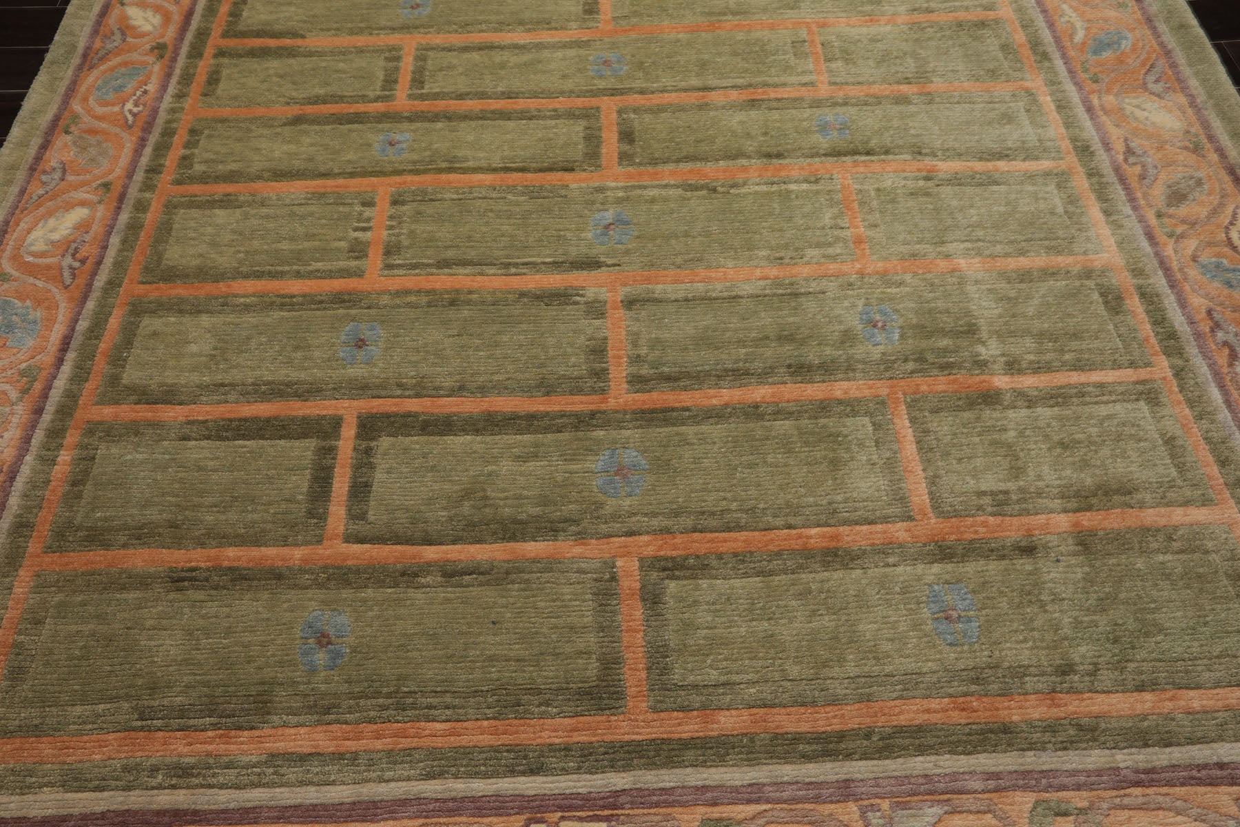 8'1''x11'4'' Hand Knotted Wool Mint Tibetan Arts & Crafts Plush Pile Mikhaelian Kohlberg Swiss Wash Rug