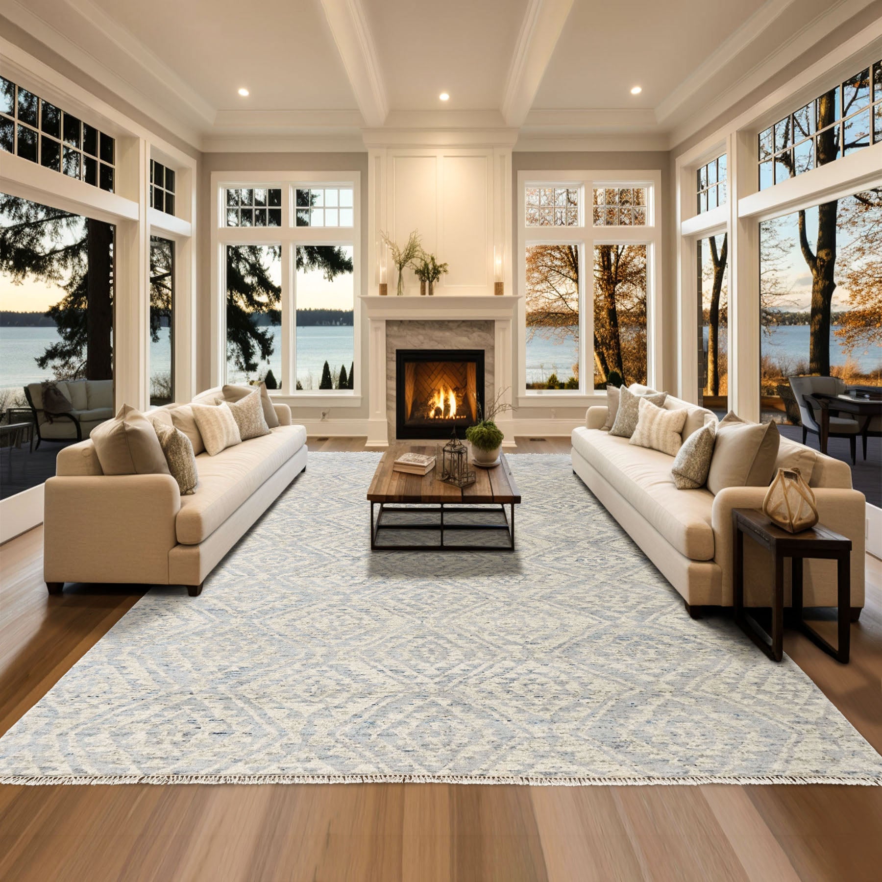 Story Behind the Art: Southwestern rug design has its roots in the textile traditions of the Native American tribes of the American Southwest, most notably the Navajo (Diné), Pueblo, and Hopi peoples, whose weaving practices date back several centuries. Early Southwestern rugs were handwoven from hand-spun wool, often dyed with natural pigments derived from plants, minerals, and insects, giving the textiles their distinctive earthy, grounded color palettes. One of the defining characteristics of these rugs is their strong reliance on geometric patterning. Designs are typically built from repeating diamonds, stepped forms, zigzags, crosses, and linear motifs, and symmetry and repetition are central to the visual language. Color plays a critical role in Southwestern design. Traditional palettes are dominated by earth tones such as clay red, sand, charcoal, ivory, indigo, and muted blues, often inspired by desert landscapes, sky, stone, and soil. Over time, especially in contemporary interpretations, these palettes have softened to include washed grays, pale blues, and neutral variations that retain the essence of the style while making it more adaptable to modern interiors.