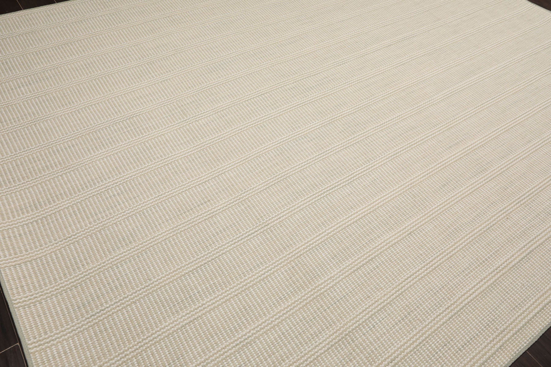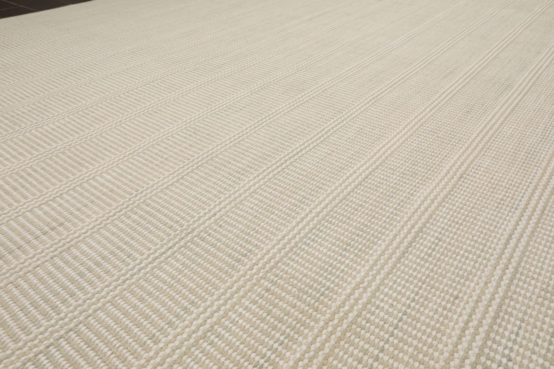 Bring understated sophistication to your space with this beige sage handloom broadloom rug. Expertly woven its intricate checkered texture and subtle tonal variation create a rich dimensional look. The soft blend of beige and sage hues offers a calm neutral palette that complements a wide range of interiors. Its tightly woven structure ensures longevity and minimal shedding making it ideal for high-traffic areas. The crisp edges and clean lines enhance its tailored appeal—perfect for modern transitional or classic settings.