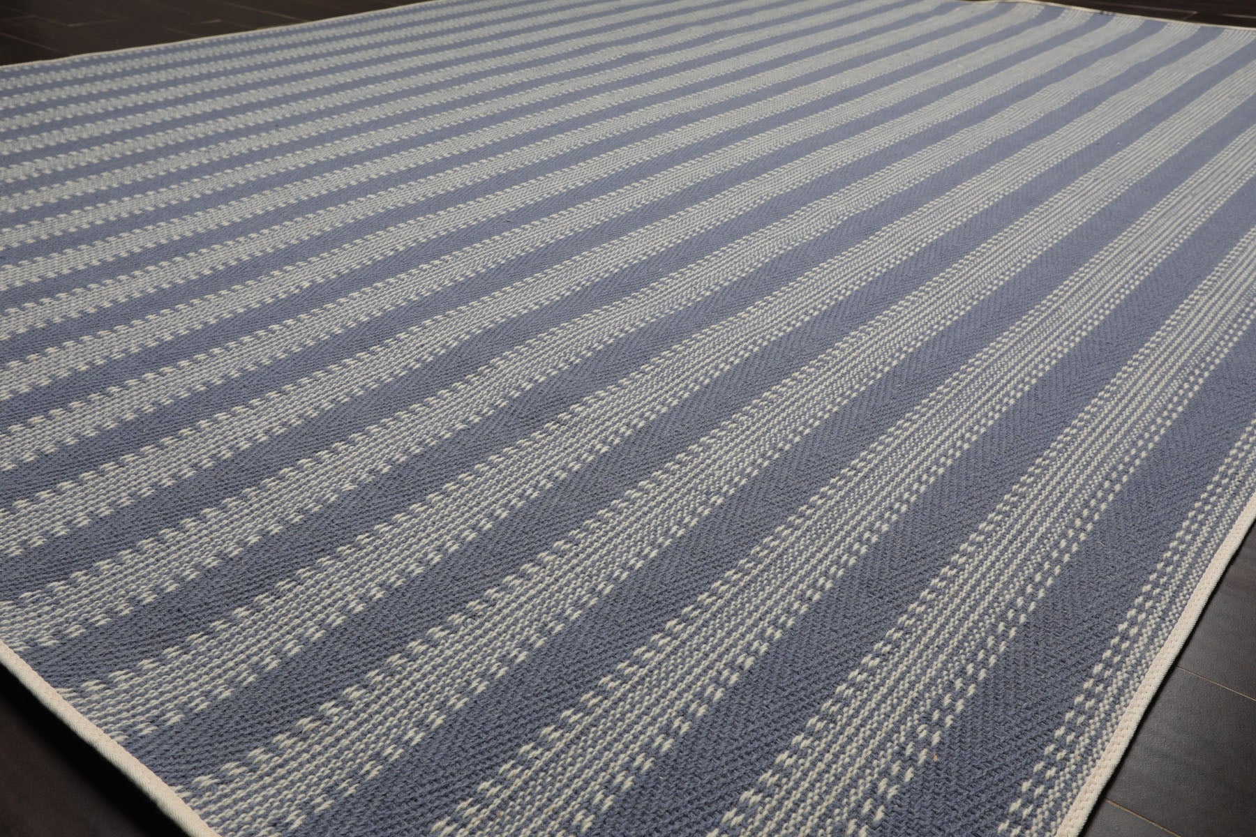 LoomBloom Multi Size Denim Hand Loomed Flatweave Modern Stripes Wool Oriental Area Rug