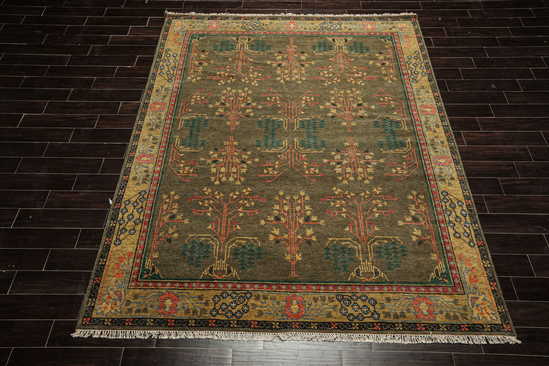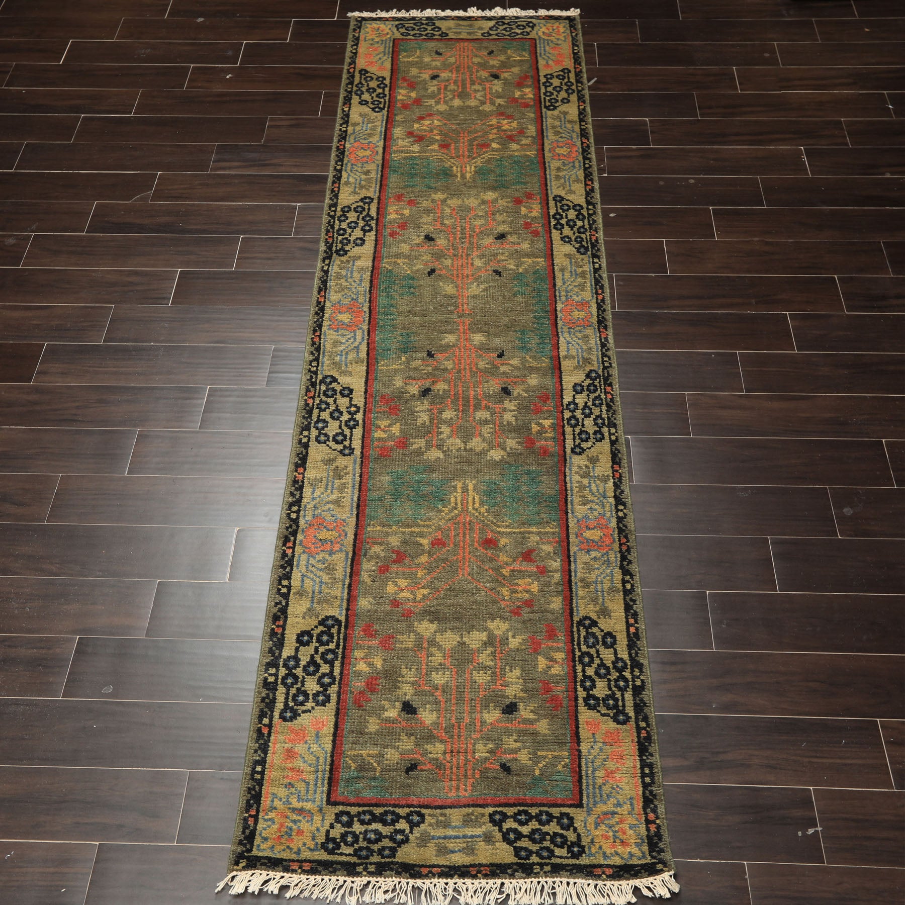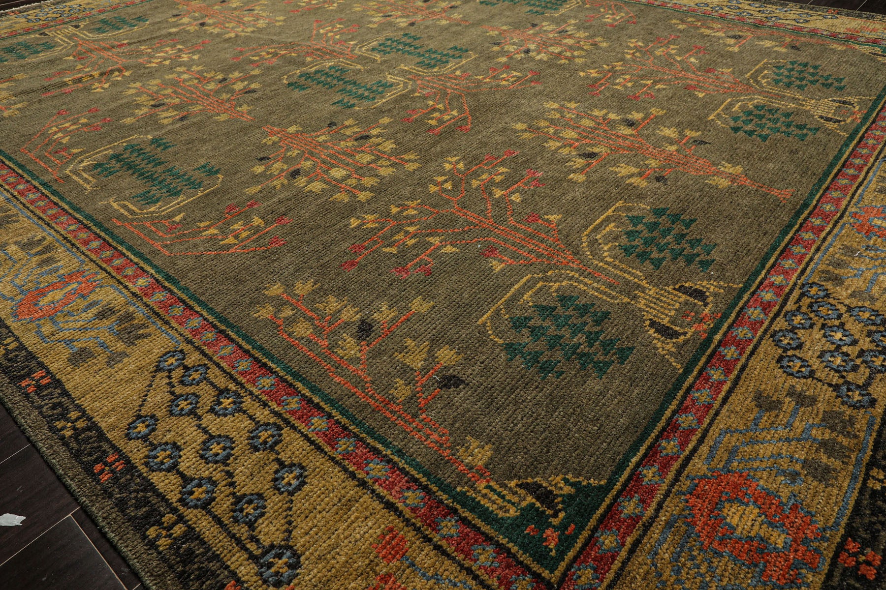 LoomBloom Multi Size Green Hand Knotted Arts & Crafts/Mission Donegal Wool Oriental Area Rug
