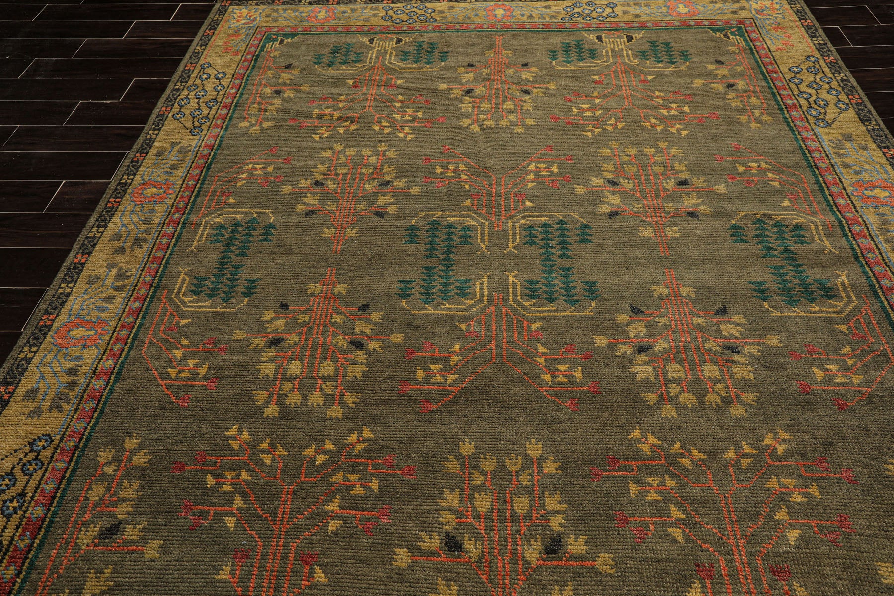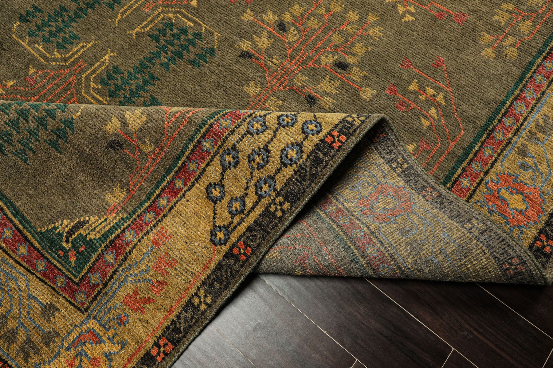 The loomBloom Hand Knotted Donegal Arts & Crafts hand-knotted rug before you seamlessly blends traditional design with modern craftsmanship. Made from fine wool with a plush yet durable texture, this rug features an intricate design inspired by classic Donegal patterns. The sophisticated color palette of green, pistachio, coral, rust, black, blue, and turquoise creates a striking yet balanced aesthetic. Hand-knotted with precision, this rug offers exceptional quality and timeless appeal. Perfect for both traditional and contemporary spaces, it seamlessly blends heritage craftsmanship with versatile, modern elegance.