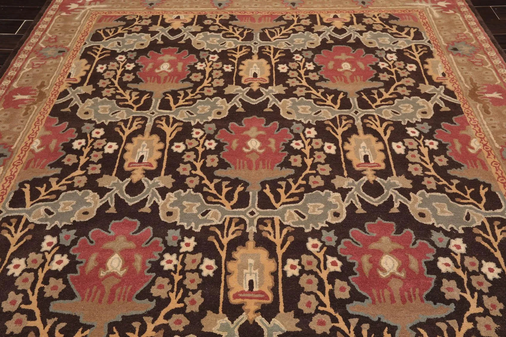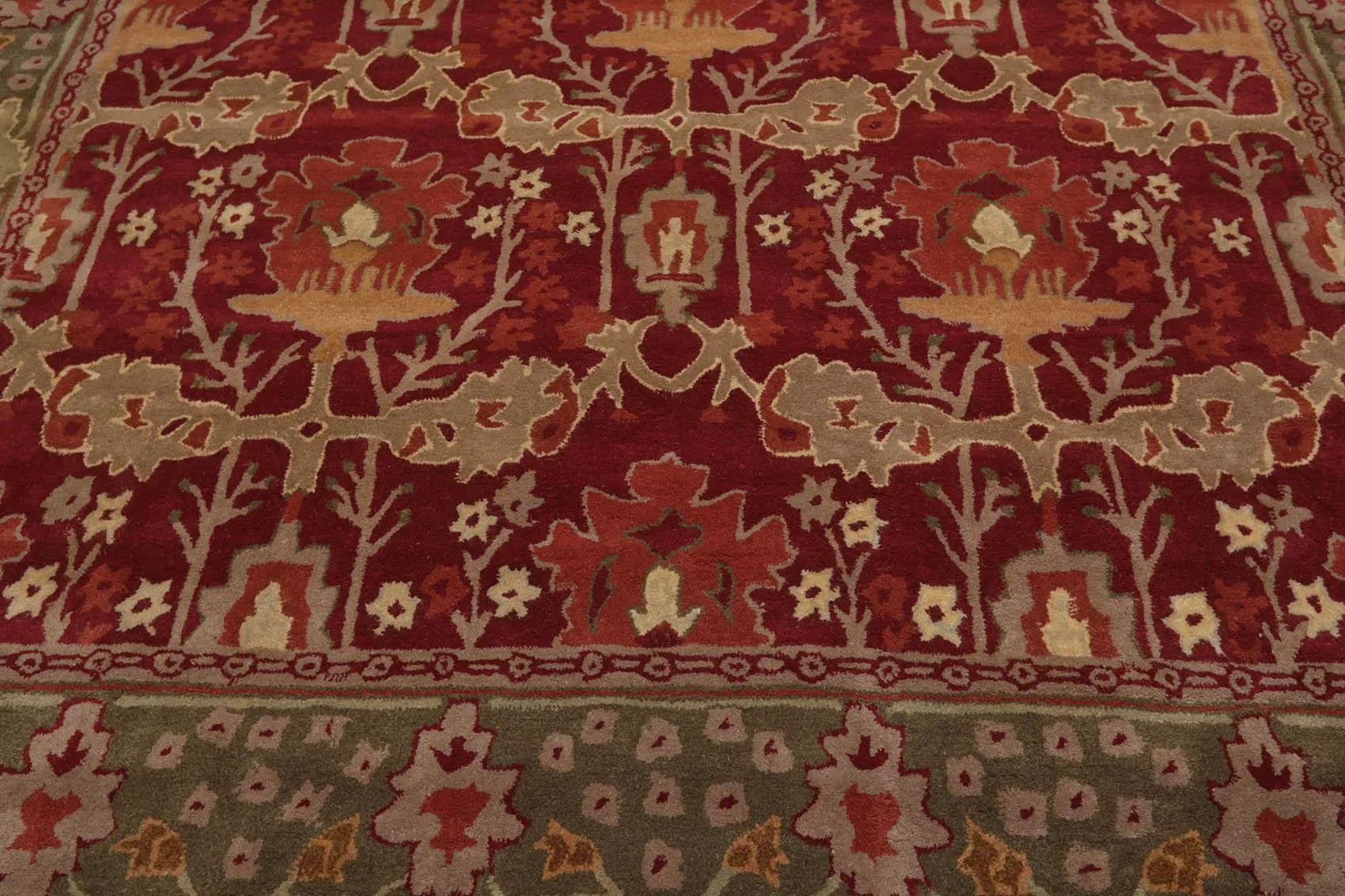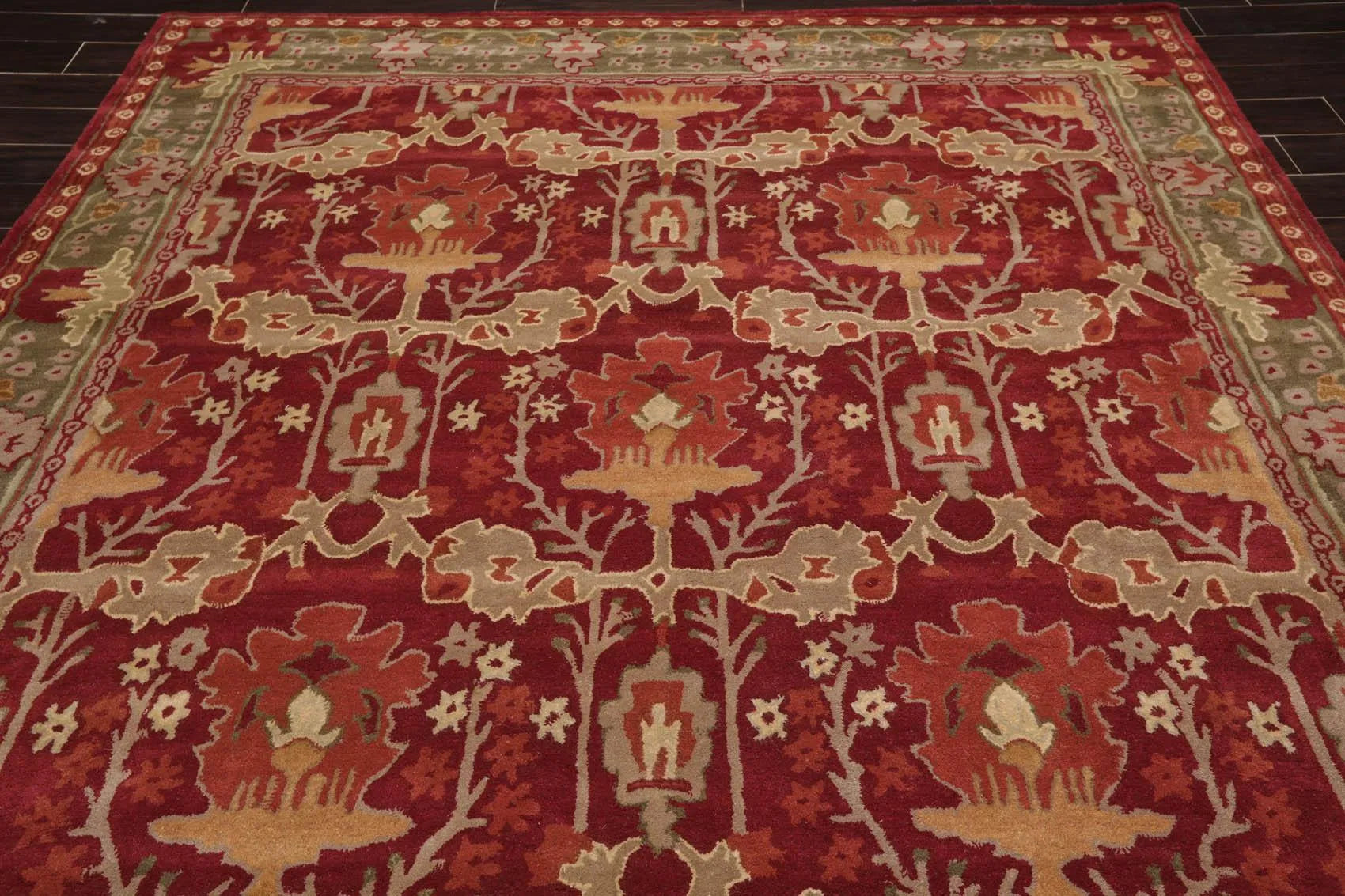 This is a beautiful Multi Sizes Multi Sizes William Morris Design handmade rug from India. The rug’s design pays homage to Arts & Crafts tradition of rug making. Inspired by the designer William Morris, the rug favors a design sensibility that evokes nature in home interiors with intricate intertwining fruit, flower, and foliage patterns on the rug. The color palette is bold and versatile to suit various home décor styles. With soft texture and timeless design, the rug is primed to add visual glamor and class to its surroundings.